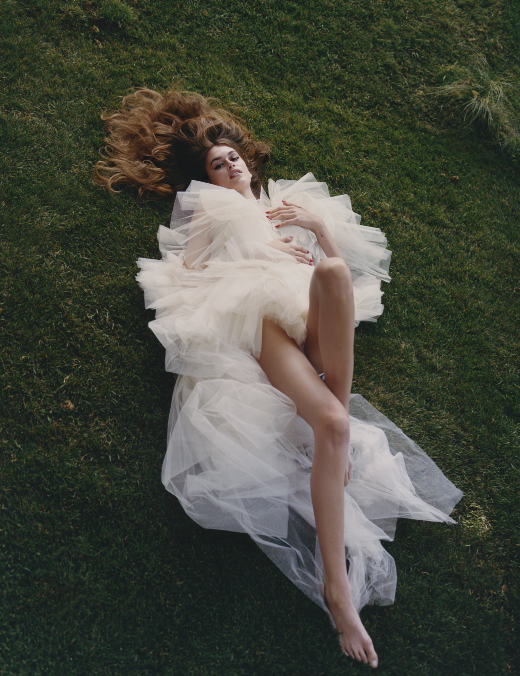 Kaia Gerber photographed by Tyler Mitchell for i-D’s The Timeless Issue, no. 371, Spring 2023