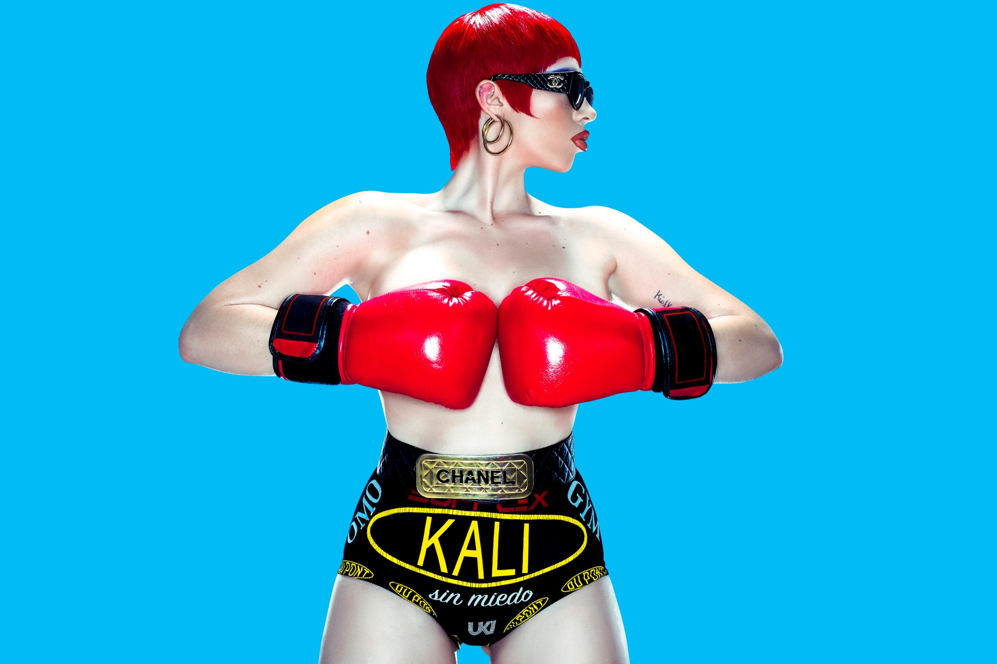 The EP touts an explicit painting by contemporary artist Oh De Laval as its cover, featuring Isolation-era Kali eating out Por Vida Kali (the singer is openly bisexual). Sonically and aesthetically, Kali Uchis plays with herself, merges the pouty Fiorucci angel with the take-no-prisoners diva and becomes the archangelic black-pink winged creature on the cover of her latest record Sin Miedo (del Amor y Otros Demonios)∞, or Without Fear (of Love and Other Demons)∞, released on November 18, 2020.