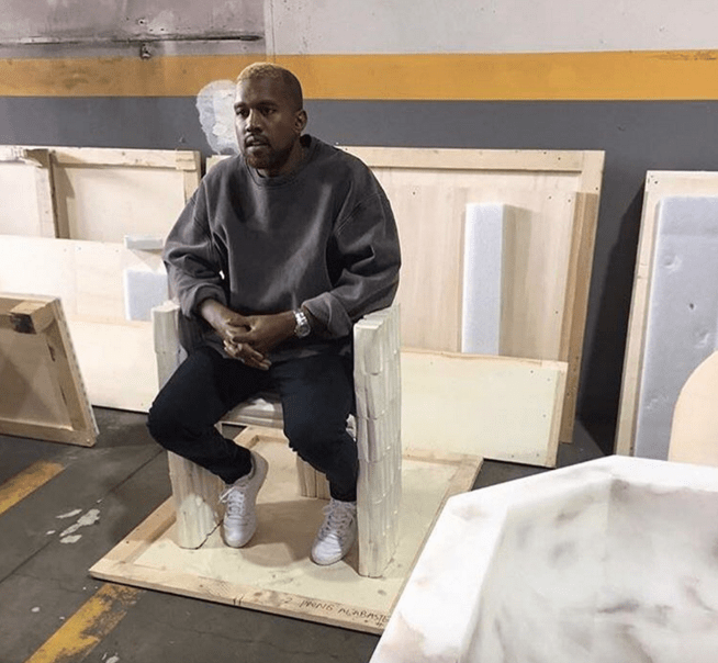 It’s not altogether shocking then that Kanye has been spotted checking out the “Rick Owens: Furniture” exhibition at the MOCA Design Center in Los Angeles. A photo of the newly bleach blonde rapper/designer was first shared on Instagram by Italian artist Giovanni Leonardo Bassan, an employee of Rick Owens and protégé of his equally brilliant wife Michele Lamy. “Since 2007 Owens has applied a punk and anarchist sensibility to furniture design as well [as fashion design],” says the MOCA’s website, “creating brutal and elegant forms out of marble, alabaster, bronze, ox bone, leather, concrete, and plywood. In addition to showcasing works in Owens’s signature materials, this exhibition marks the artist’s foray into foam and rock crystal.” The show doesn’t officially open until December 17, so it appears that this was a private preview.