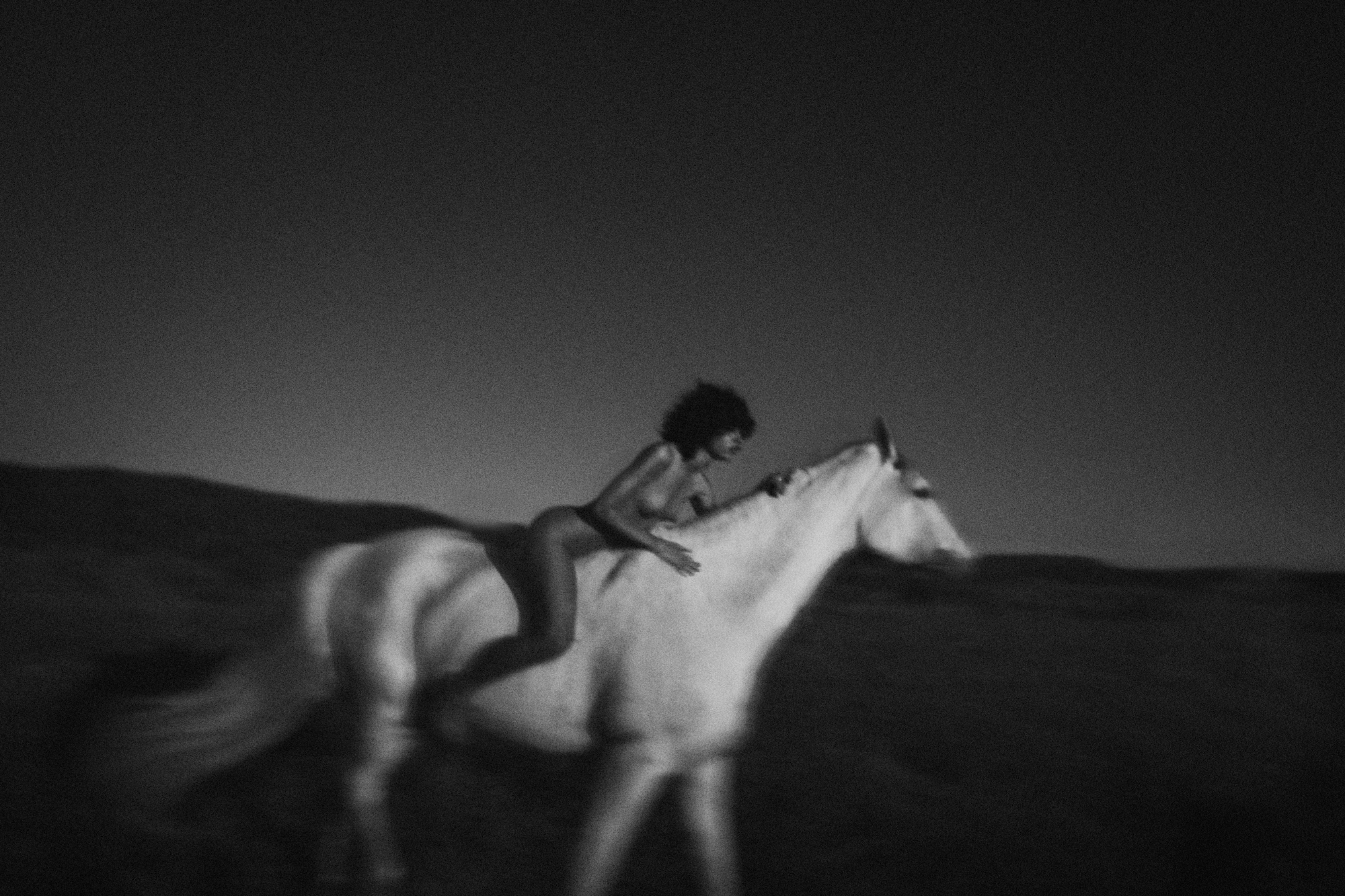 Each of Kate’s photos is its own summer adventure: her friends make paella on the waterfront of a remote fisherman’s village, setting up a little table and paddling in gas canisters, the giant dish, ingredients and wine. Her Spanish muse Marina rides a white horse for the first time ever, bareback. “She’s riding around on this horse [naked] with only her pink crocs on and I’m like, ‘Get the crocs off’. She’s just cracking everybody up. We had such a laugh.”