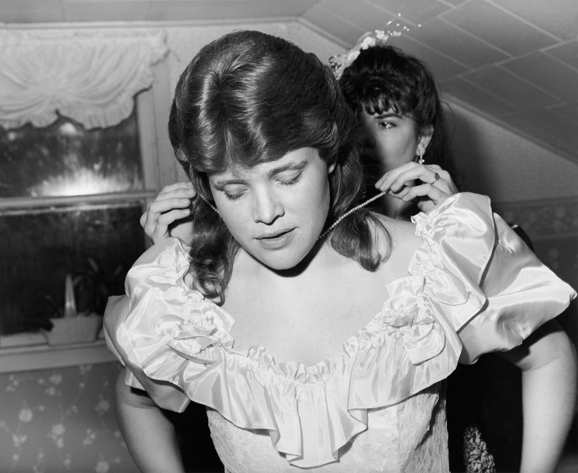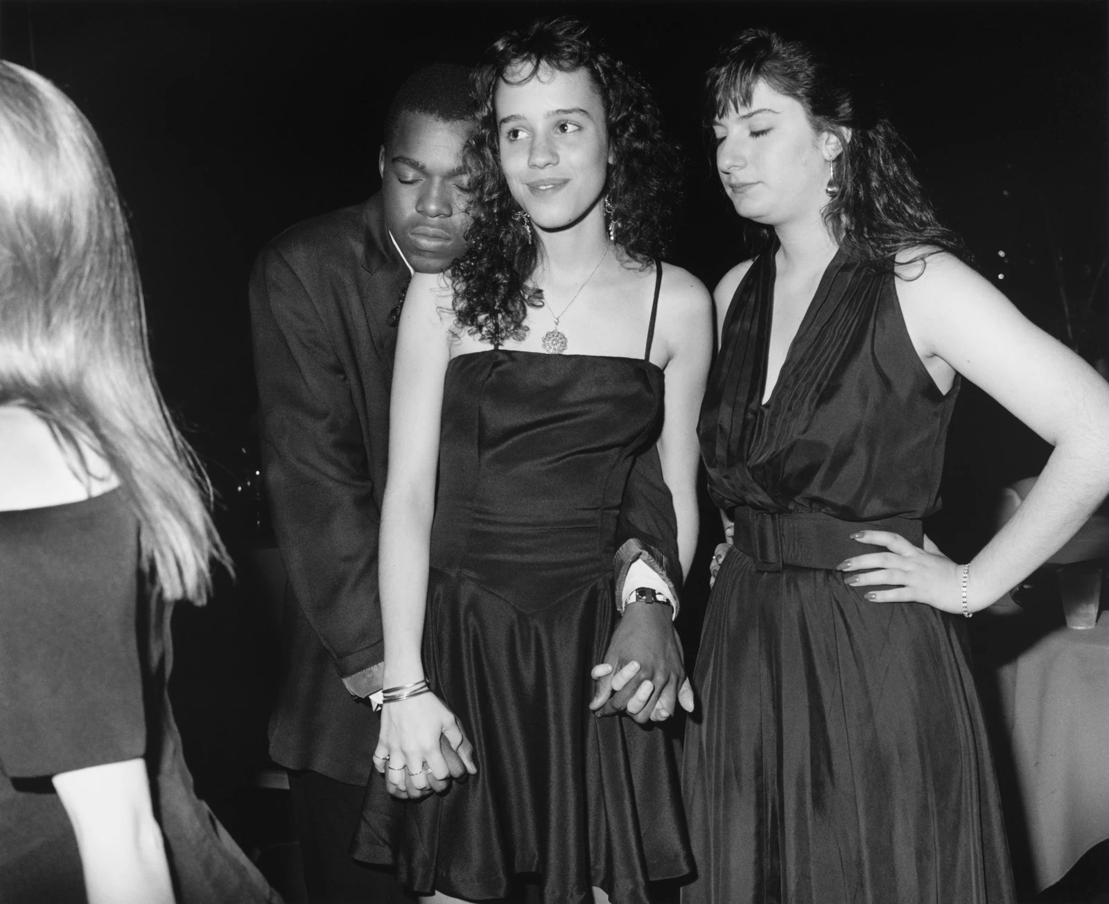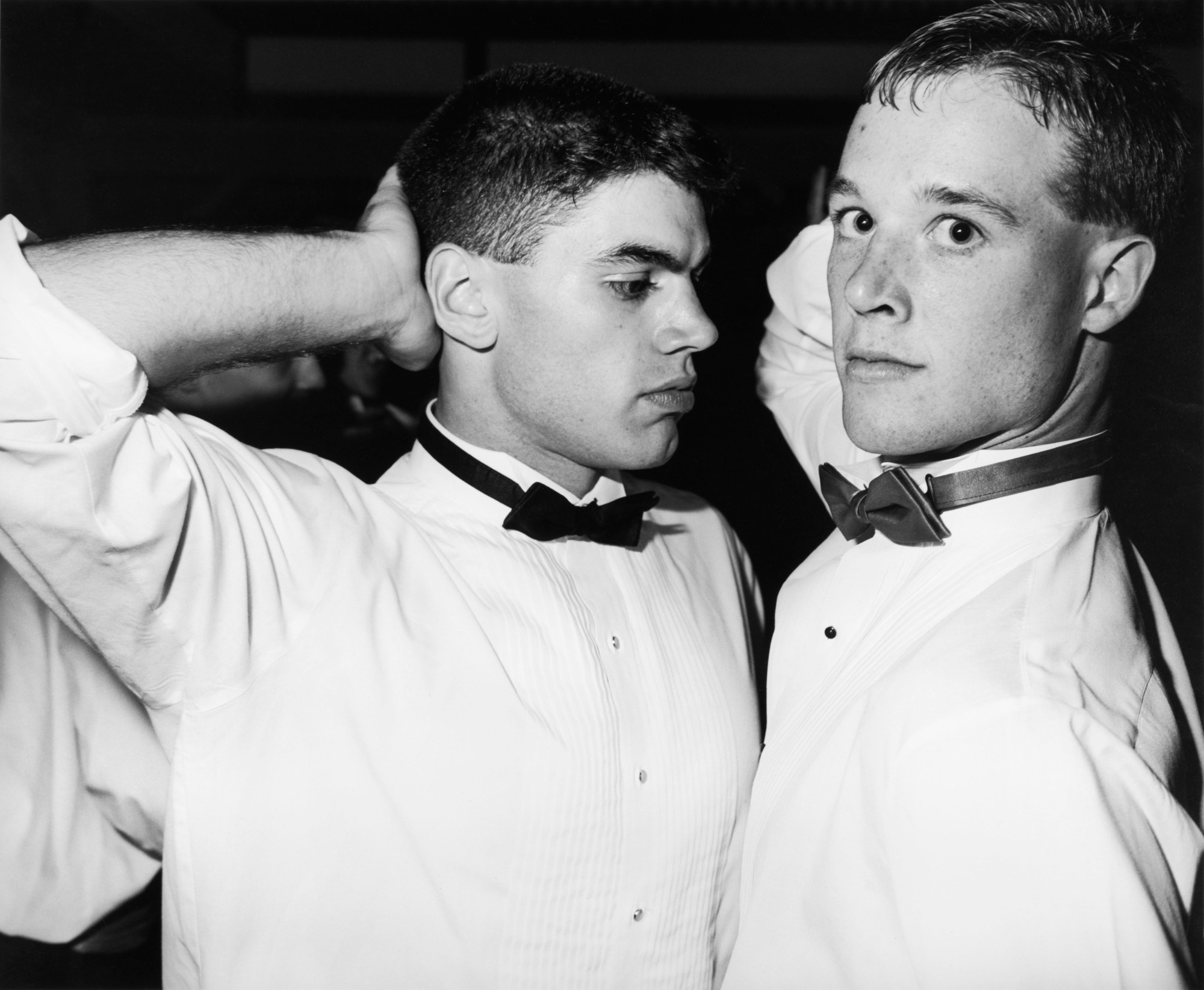 Cropped compositions radiate an overwhelming sexual tension, as lust clashes with suppressive settings like rural Catholic schools or naval academies. For every picture of a couple locked in a kiss or sweet embrace, there’s another caught in an awkward state of denial. Two boys dance with hands behind their heads at a Pennsylvania prom in 1994, their chests touching ever so slightly, diverting their gazes as if forbidden. Even a gesture as simple as a boy resting his head on a girl’s shoulder can be interpreted as an act of withholding, a palpable longing for something more.