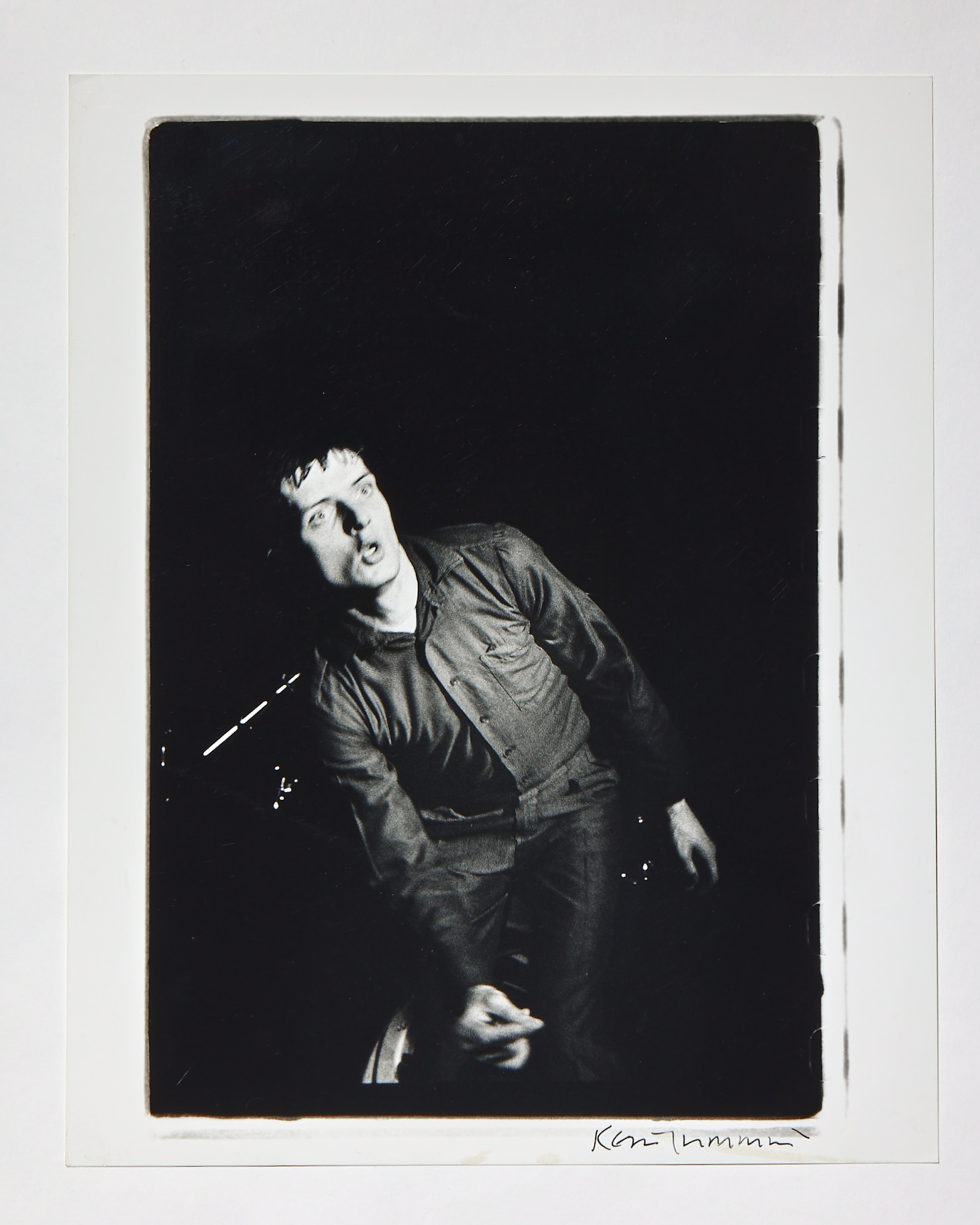 Poring over the work, anecdotes emerge. The photographs tell an accurate tale of what it was like to work for a weekly paper such as NME at the time, where he was regularly sent out on assignment. Whereas soft, tonal shots would simply wash out when the issue went to print, the starkly contrasted black-and-white imagery that Kevin favoured would remain impactful on the page. Wonky borders created in the dark room reveal the fledgling artist’s attempts to find a signature style of framing, while late nights developing on a shoestring budget tell the tale of a working class lad’s unrelenting desire to sanctify every shot in a half roll of film. Kevin would squeeze in extra photographs, keeping them for himself.
