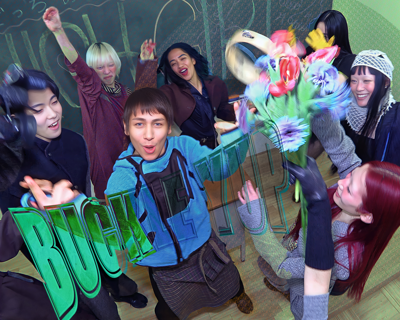 The foundation of the project is a full-length album written and arranged by Ryan. At its core, BUCKLE YUP functions as a musical, with dialogue interspersed throughout. The “commercial” unfolds in three acts, each centered on a specific Tabi shoe. While the broader narrative arc continues to take shape, act one, titled “Cue Shoes,” introduces the characters through the performances of our band, composed of both boys and girls. The energy of the shoot mirrored the tone of “Cue Shoes” itself: chaotic, immediate, and highly charged. Seeing Ryan work in real time was a special experience.