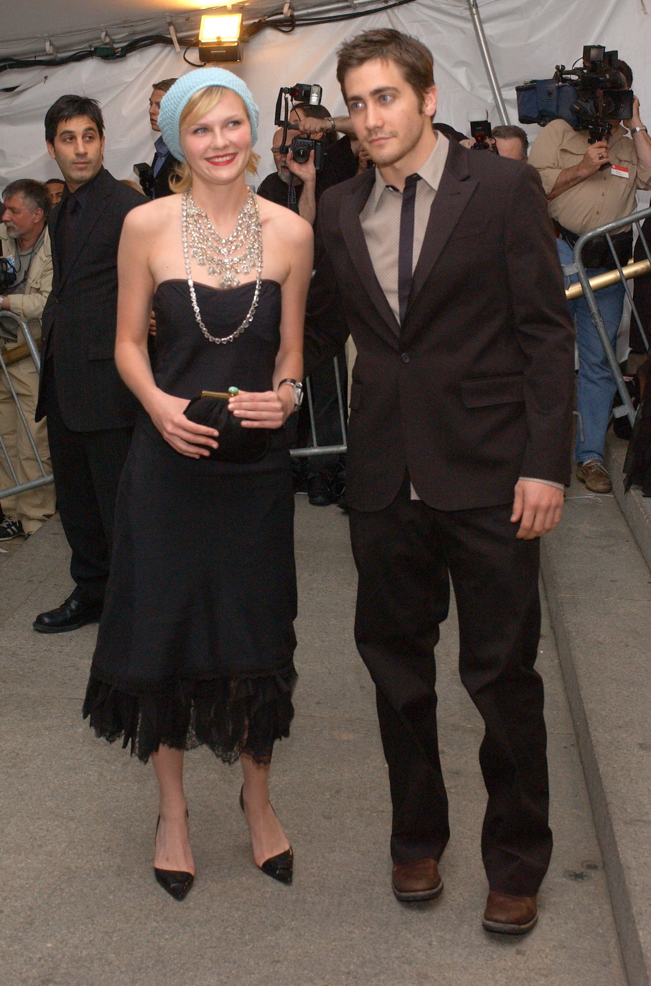 Name a more iconic duo. Throughout the early to mid 00s, Kirsten and Jake Gyllenhaal were young Hollywood’s it couple. Their frequent run-ins with the paparazzi not only gifted us with one of the best celebrity memes of all time, but also some pretty memorable street style looks. Strolling the streets of Soho, packing on the PDA outside Balthazar or simply sharing a salad on a bistro terrace, Kirsten was photographed with her then-beau wearing her subdued, casual take on the era’s boho-grunge style. Think newsboy caps, suspenders worn over a white tee, beat-up Chucks and Uggs, extra-long scarves, beanies, floor-length coats and pointed toe pumps peeking out from beneath a pair of denim flares (pictured here).