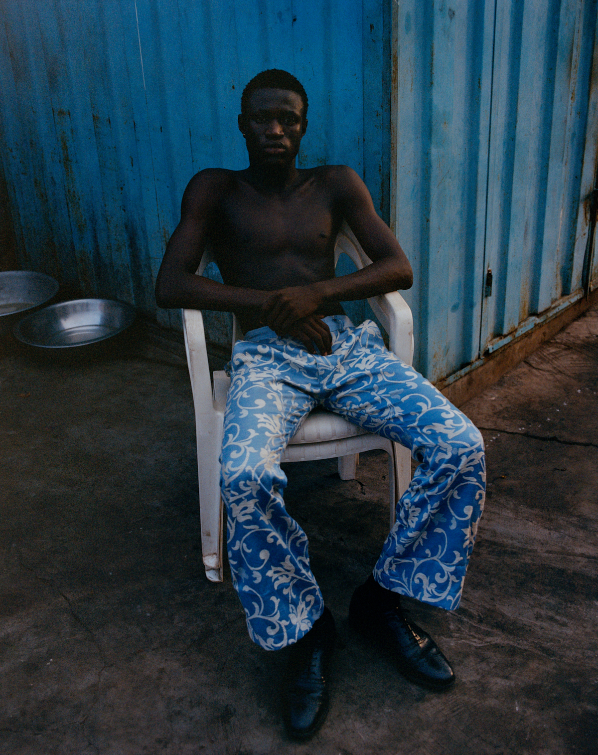 Another of Kyle’s regular collaborators is Jude Lartey, who he met at the Chale Wote Festival in 2016. “I was immediately struck by their innate style — the entire crew was dripping in such authentic, unapologetic style,” Kyle says. Since then, Jude has established himself as a stylist and prominent voice within the fashion and photography scene in Ghana. “There was an incredible synergy between the three of us as we explored the city, finding more people and places to photograph.”
