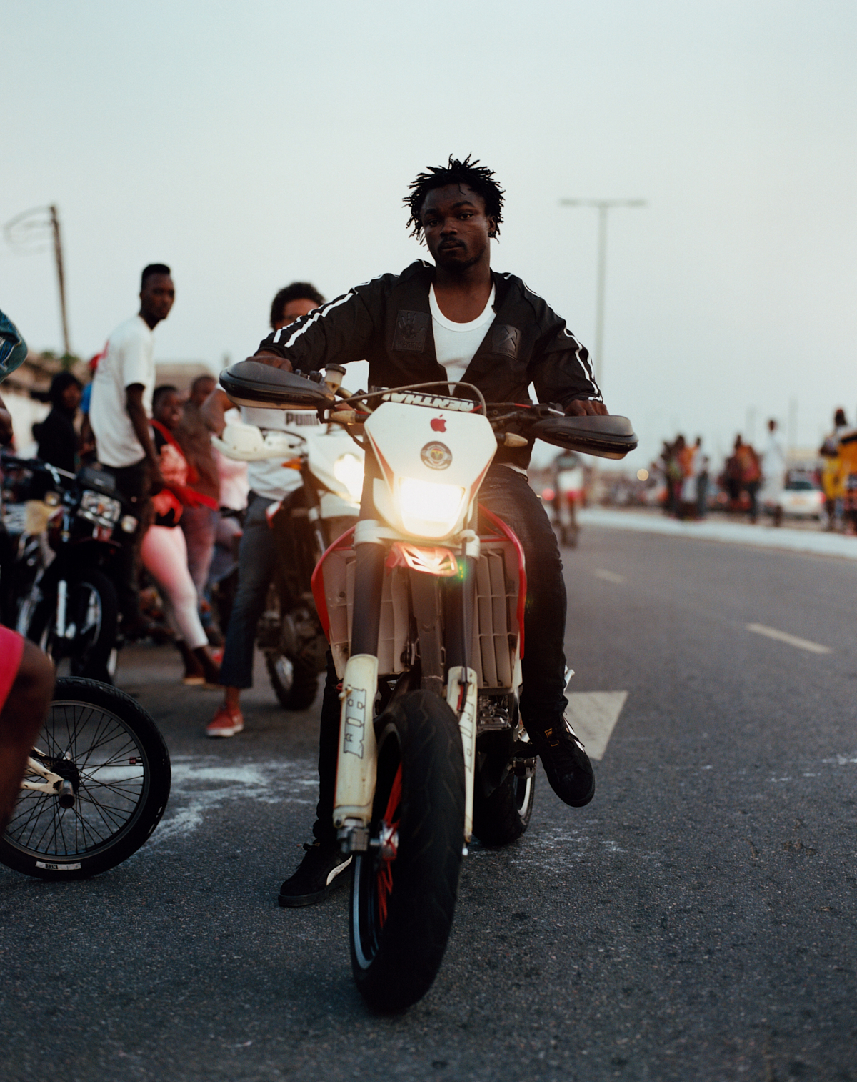“I found myself there at a time when it was really rapidly expanding,” Kyle says. “It was super interesting to gauge, over the seven years that I’ve been travelling there, how the creative industry really blossomed. And, from a personal perspective, seeing how the people that I formed relationships with from the beginning have managed to push their craft and gain more international exposure.” During his trips, Kyle photographed musicians like John Nii Commey Tetteh aka Tot Man, who’s recently been touted as one of Ghana’s rising musicians, and later shot him recording at the City Monstars Studio. They met in Jamestown — one of the oldest parts of Accra — and over six years have built a powerful friendship throughout which John has helped connect the photographer with local creatives and navigate the city’s streets.