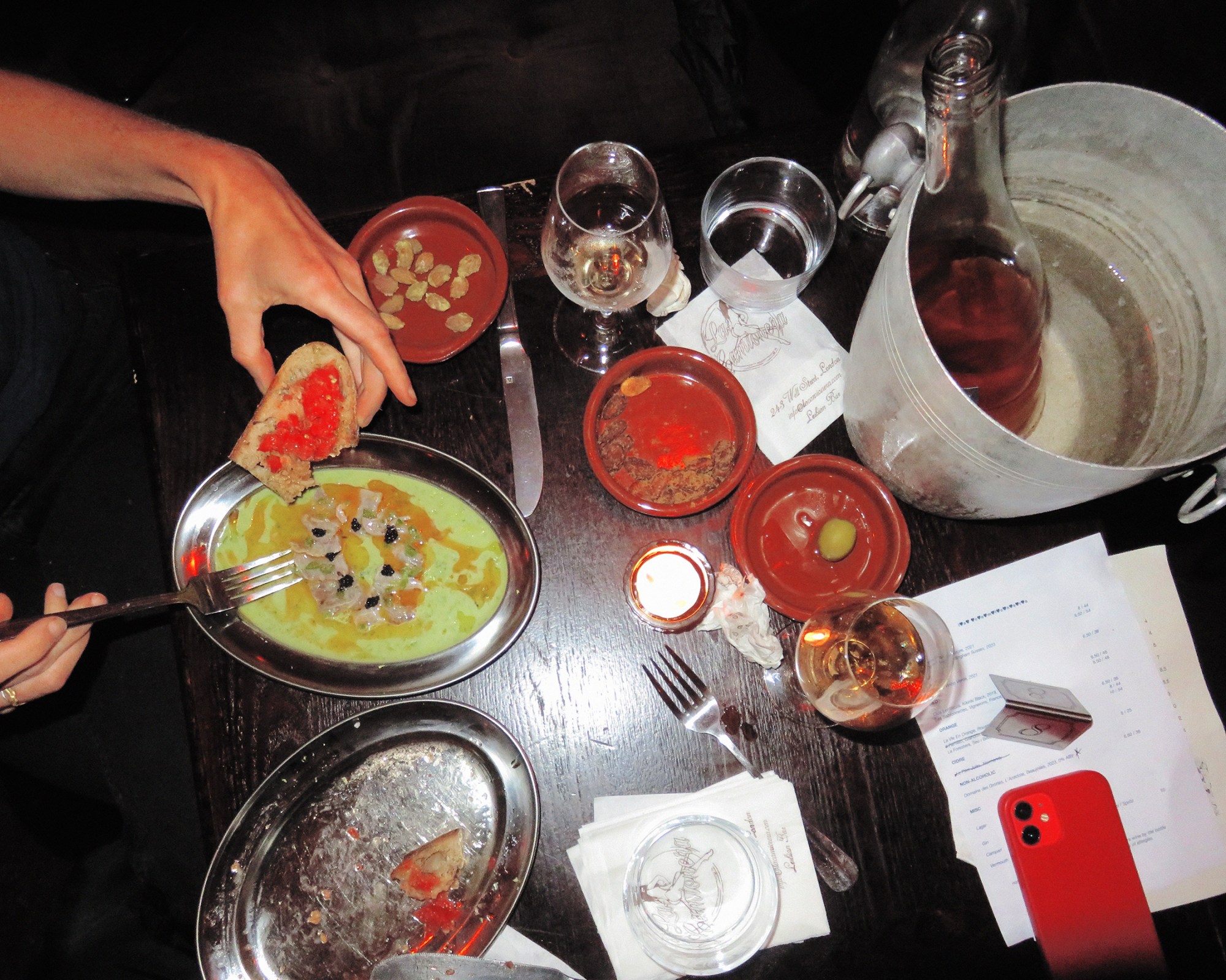 The vibe is inspired by the bars you might find on the continent: hand-painted tiles, soft orange lighting and exposed concrete flooring. But it feels right at home here in Hackney, with Jolene’s HQ in one direction and Viccy Park in the other. When I tell Jimmy that my friend, an impressive girlboss type, might join us, they nod their head and say: “It does feel like we need a girlboss here.” Or at least a girlboss’s bank account – a bottle of orange wine will set you back around £50.
