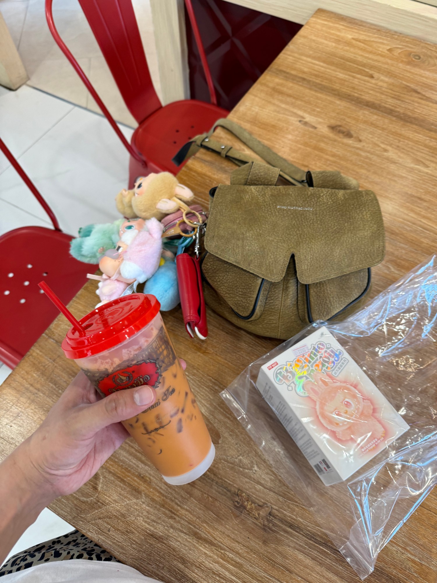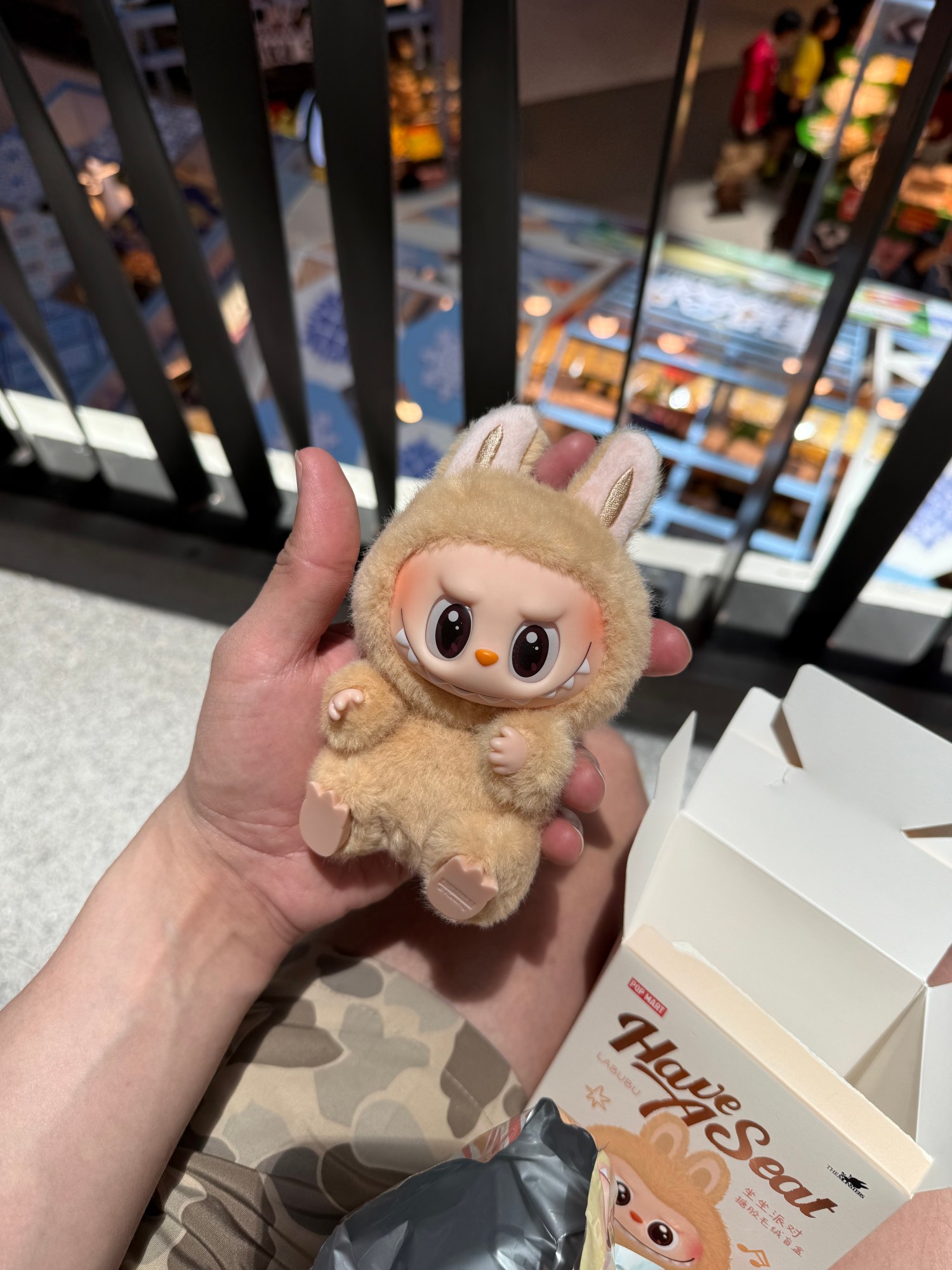 It started innocently enough on a stroll through Central Festival mall. I spotted a queue curling around the Pop Mart boutique—“boutique” here meaning a mega toy brand that sells a variety of designer dolls like CryBabies and Labubus. People were sweating, committed. So, I queued. For the vibe, I told myself. It was ironic, I told myself. Twenty-five minutes later, I held a blind box. It was from the “Have a Seat” Labubu collection. 550 baht (roughly $17). I cracked it open like a Kinder Surprise for existentially fragile adults.