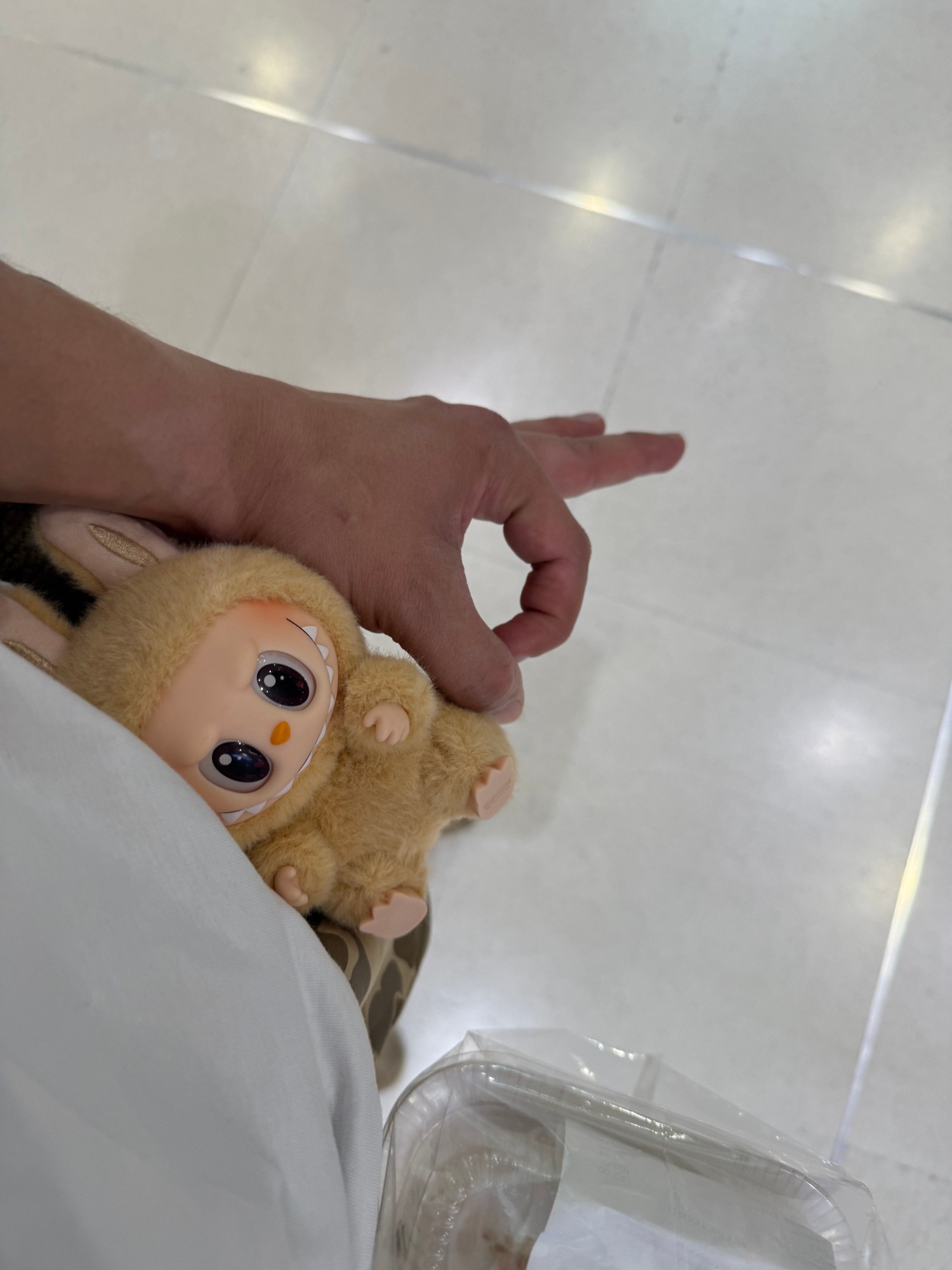 Inside was Baba. A sweet, solemn, light brown fur boy Labubu with impossibly kind eyes, and scrumptious little monster feet. Something in my body shifted. I was no longer just a man. I was mother. I held him up like Simba on Pride Rock, except in the food court of a Thai shopping center. The high was immediate. The box was still warm in my hands and I was already opening Instagram.