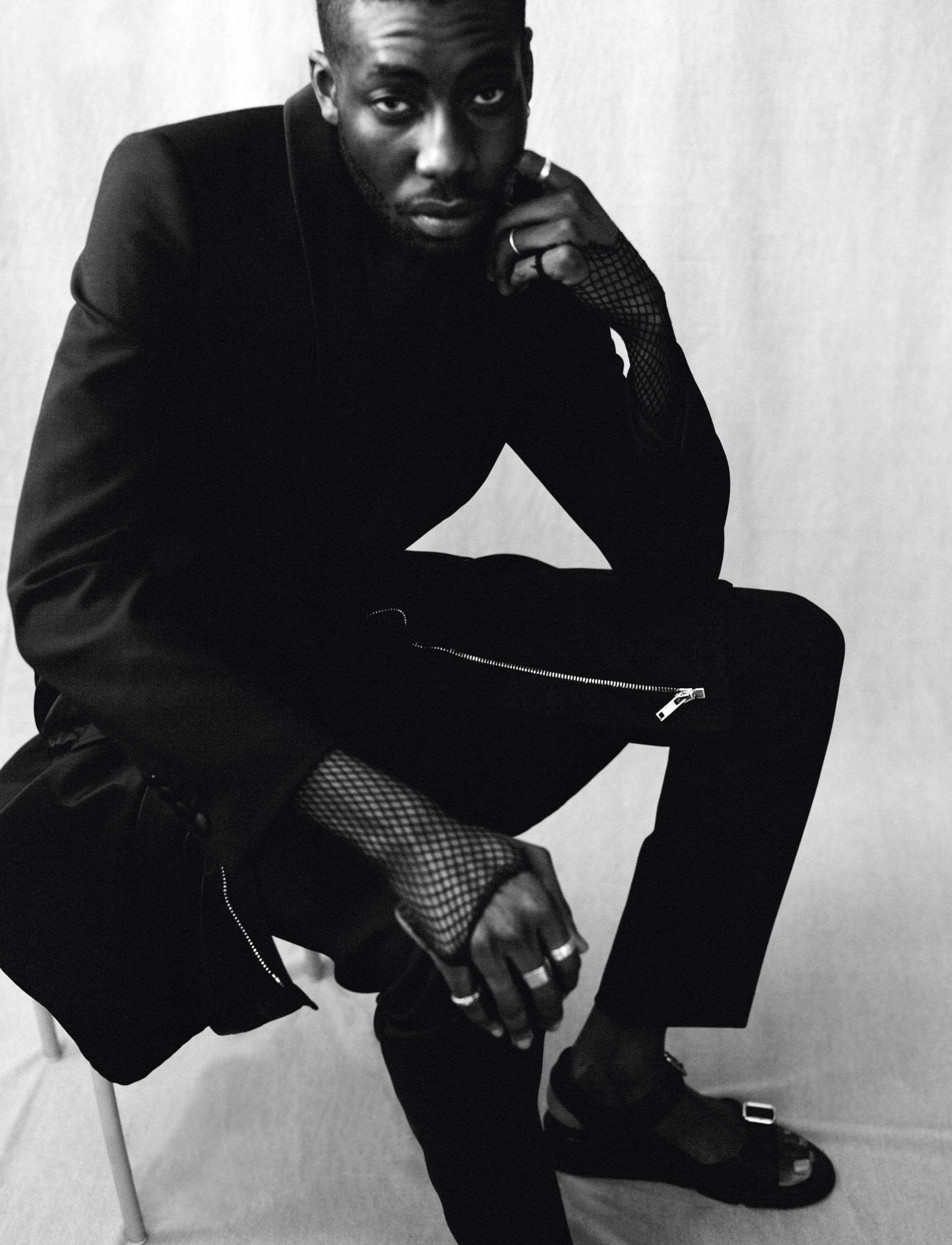 Larry is wearing suit Givenchy. Top model’s own.