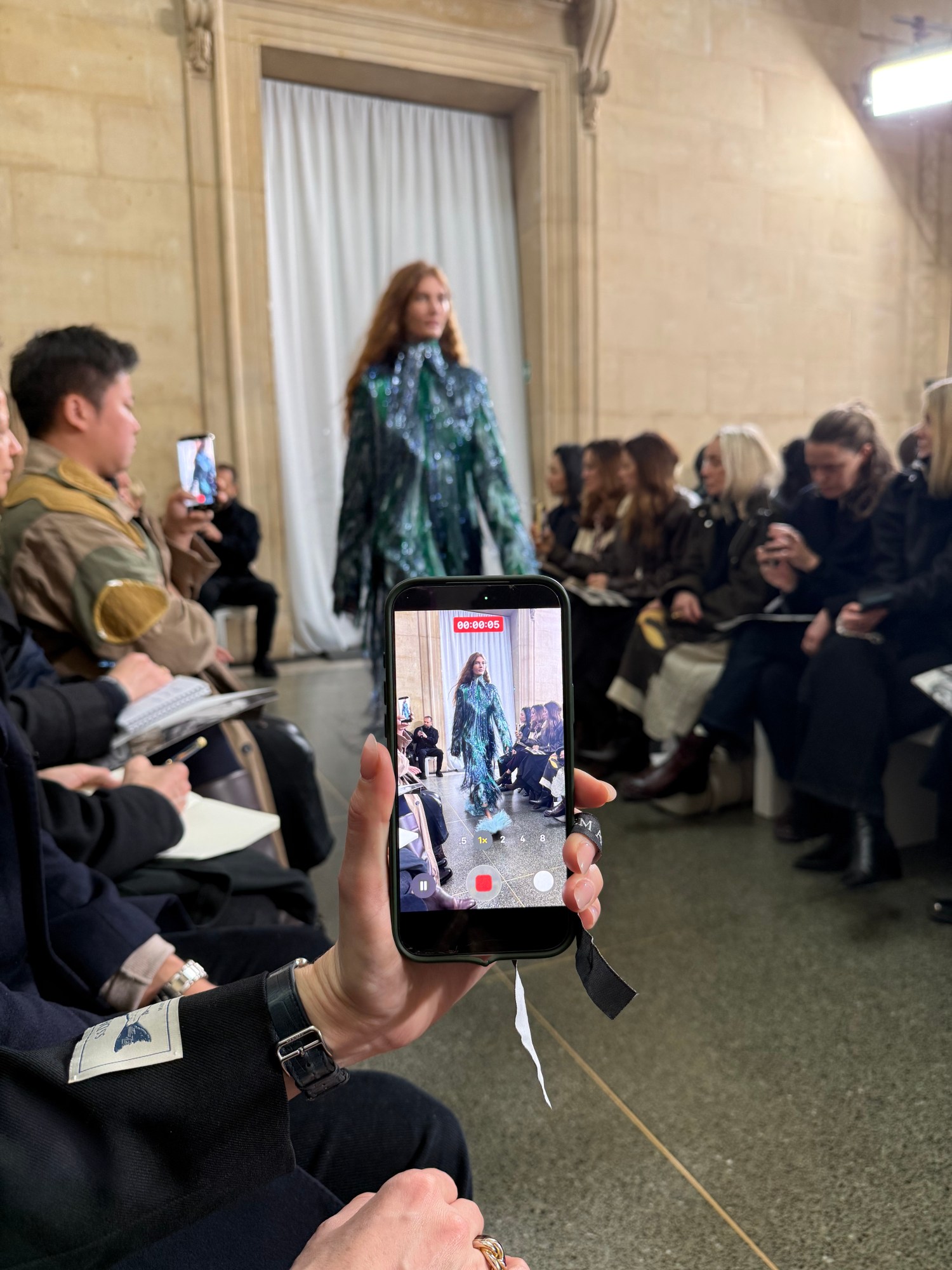 We haven’t discussed the collection yet. Nothing has happened. Instead, we are talking about the week so far. About something she has noticed. “There’s been a real leveling up,” she says, wincing slightly at the phrase but not retracting it. “The quality. The finish. The confidence.”