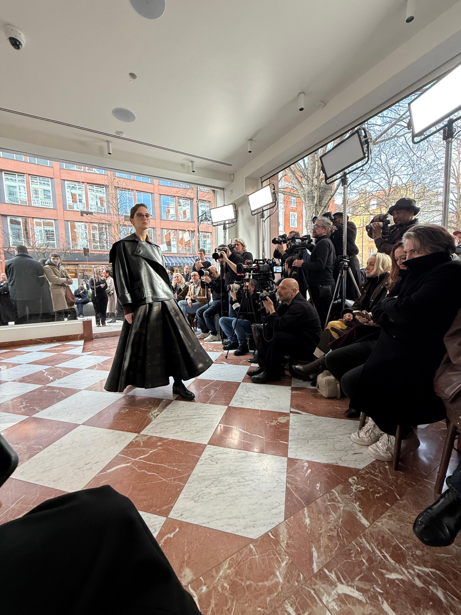 We meet again later, at Emilia Wickstead. Once again, the conversation unfolds in the anticipatory quiet before the lights go down. She chooses seats near the exit. “So I can dash,” she says lightly. She attends every show on the London Fashion Week schedule. The logistical choreography alone is a full-time job. I ask whether designers still need the runway, as schedule stars like Jawara Alleyne and Chopova Lowena sit out the format this season. “There’s a difference between need, should, and could,” she says. “Does a designer need to show to be successful? No. Should they consider it for visibility, amplification, community? Yes, if it aligns with who they are.”