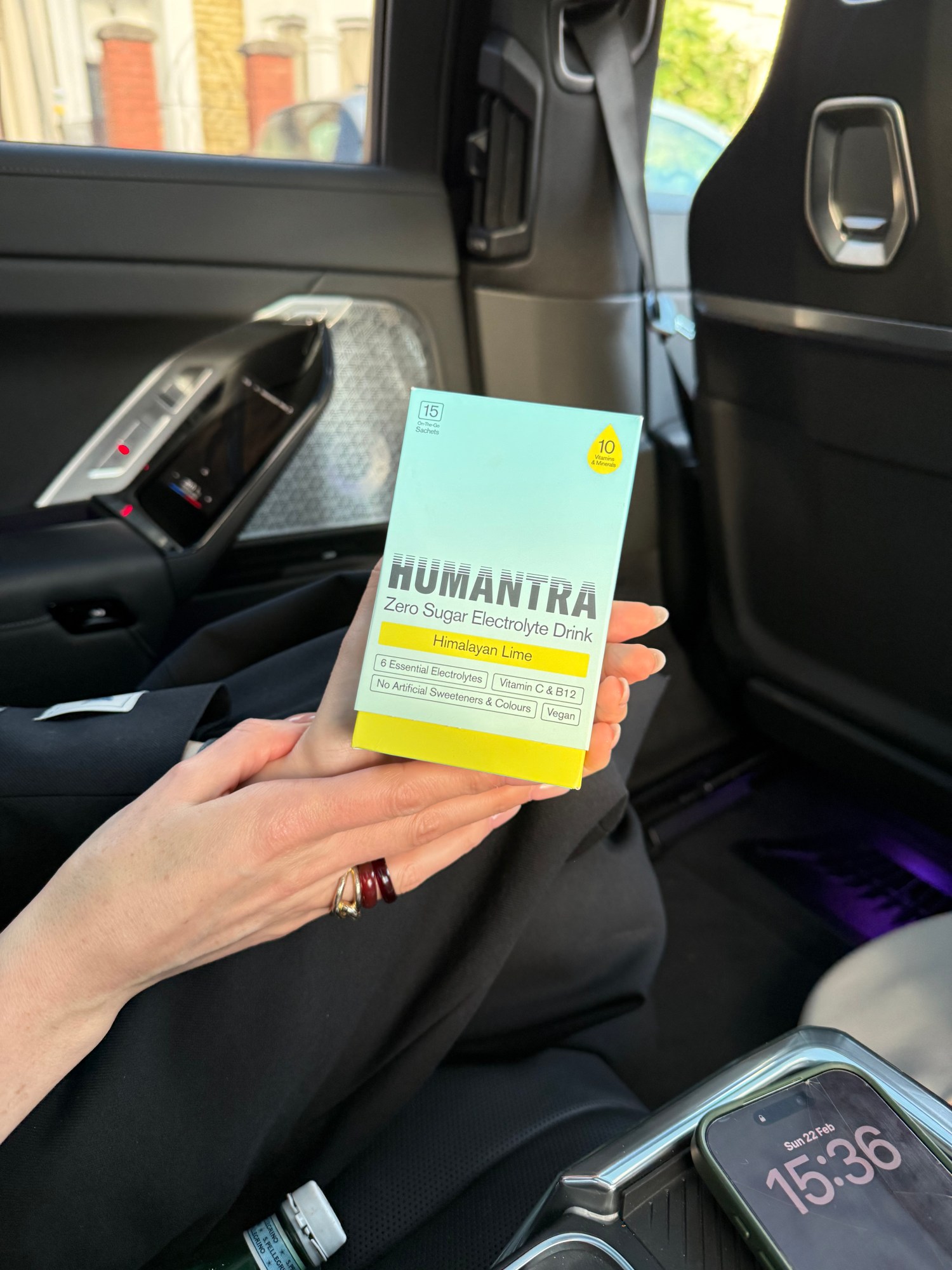 On our way to Alexandra Palace, the pace softens. We share Belgian milk chocolate peanuts from Marks & Spencer—her favorite. Her other Fashion Week essential sits nearby: Humantra’s zero-sugar electrolytes (Himalayan lime flavor). Hydration, she tells me, is non-negotiable. It is in the car, suspended between venues, that the personal chronology unfolds. She was born at Guy’s Hospital in London. Lived first on Manor Road, then in Charlton. Her parents separated when she was 11. She worked from 14 at Greenwich Market, making jacket potatoes and fry-ups. She sold double glazing. She cleaned. She sold insurance. “I’ve always worked,” she says, without drama.