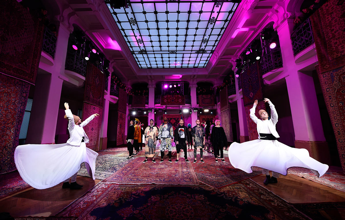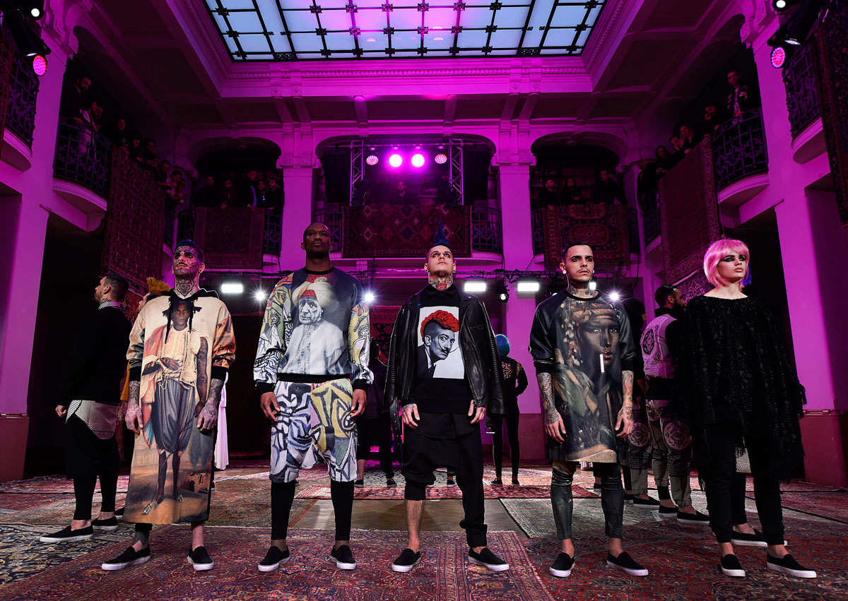At Via Clerici yesterday, Bunyamin Aydin revealed his latest collection for Les Benjamins, riffing afresh on the brand’s “Ottoman Punk” theme. Models showed off a range of leather, sportswear and graphic tees while Sufi whirling dancers created a spectacle all around them. Reflecting the brand’s Istanbul base, the bold clothes interplayed Eastern and Western fabrics and silhouettes. Familiar iconic faces, including Jean-Michel Basquiat, Grace Jones and Salvador Dali gazed out from tops that ranged in length from kaftan to t-shirt. The afterparty at Radio Bar was the usual fun affair — previous performances have seen Skepta, Wiley and Travis Scott perform — and the brand will be following all this up with a big party at Silencio in Paris during the men’s fashion week.