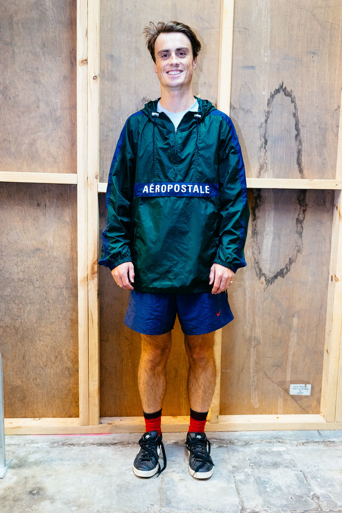 Socks, an old pair of Nike shorts, a windbreaker and a trail run events shirt.