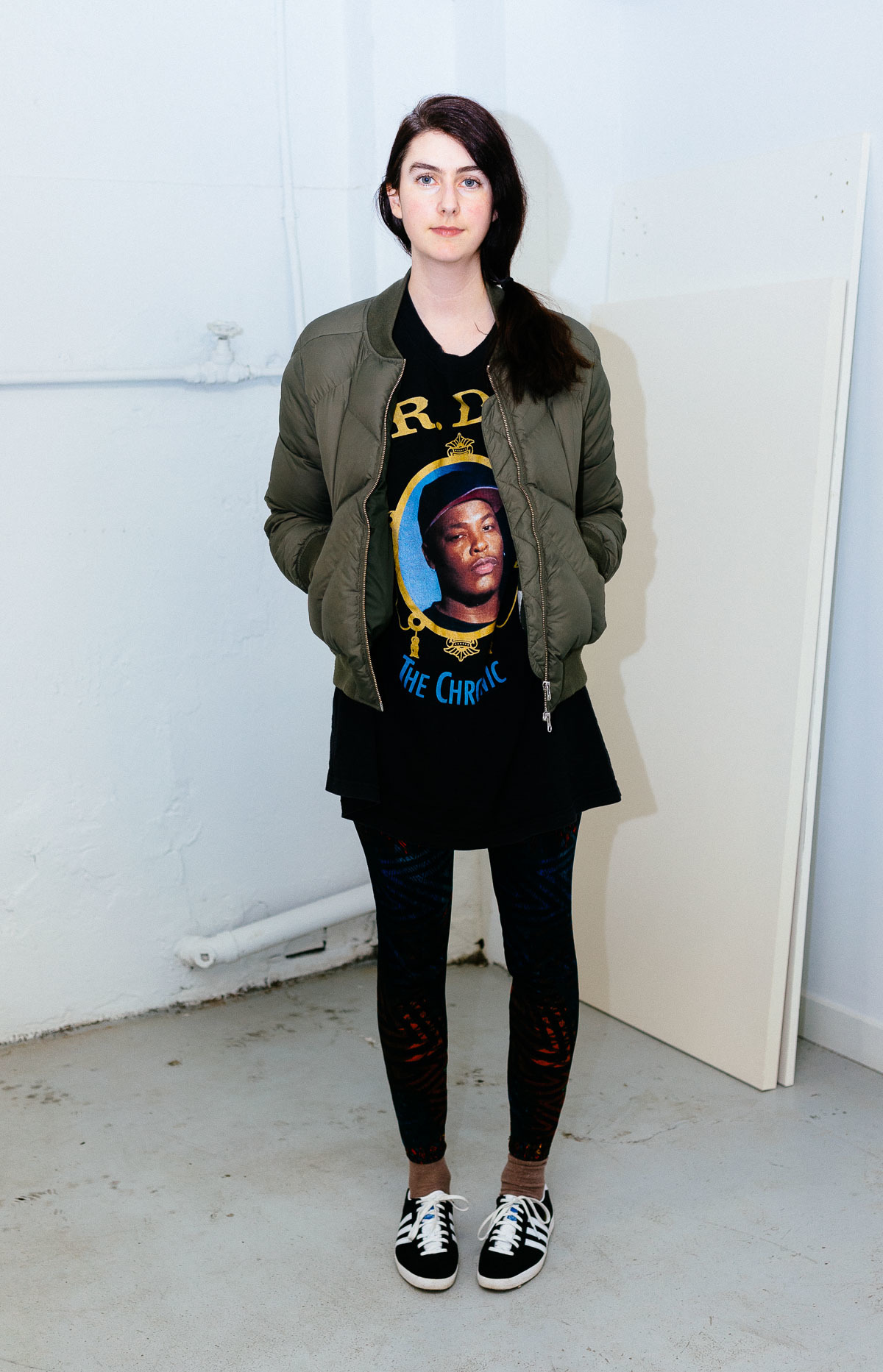 Adidas Gazelles, ridiculous leggings I found in a NYC thrift store, a Dr. Dre t-shirt I acquired from the tallest guy I know and a Kloke down jacket.