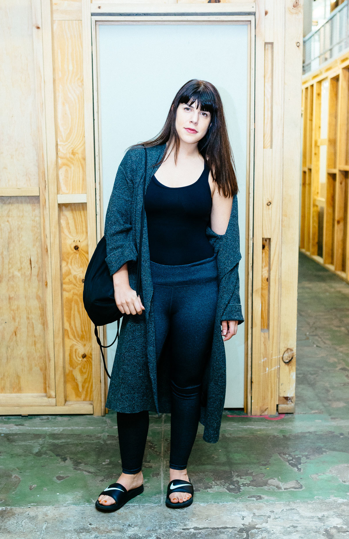 Lululemon leggings, some really old American Apparel top, Nike slides, Adidas sling bag and Zara cardigan.