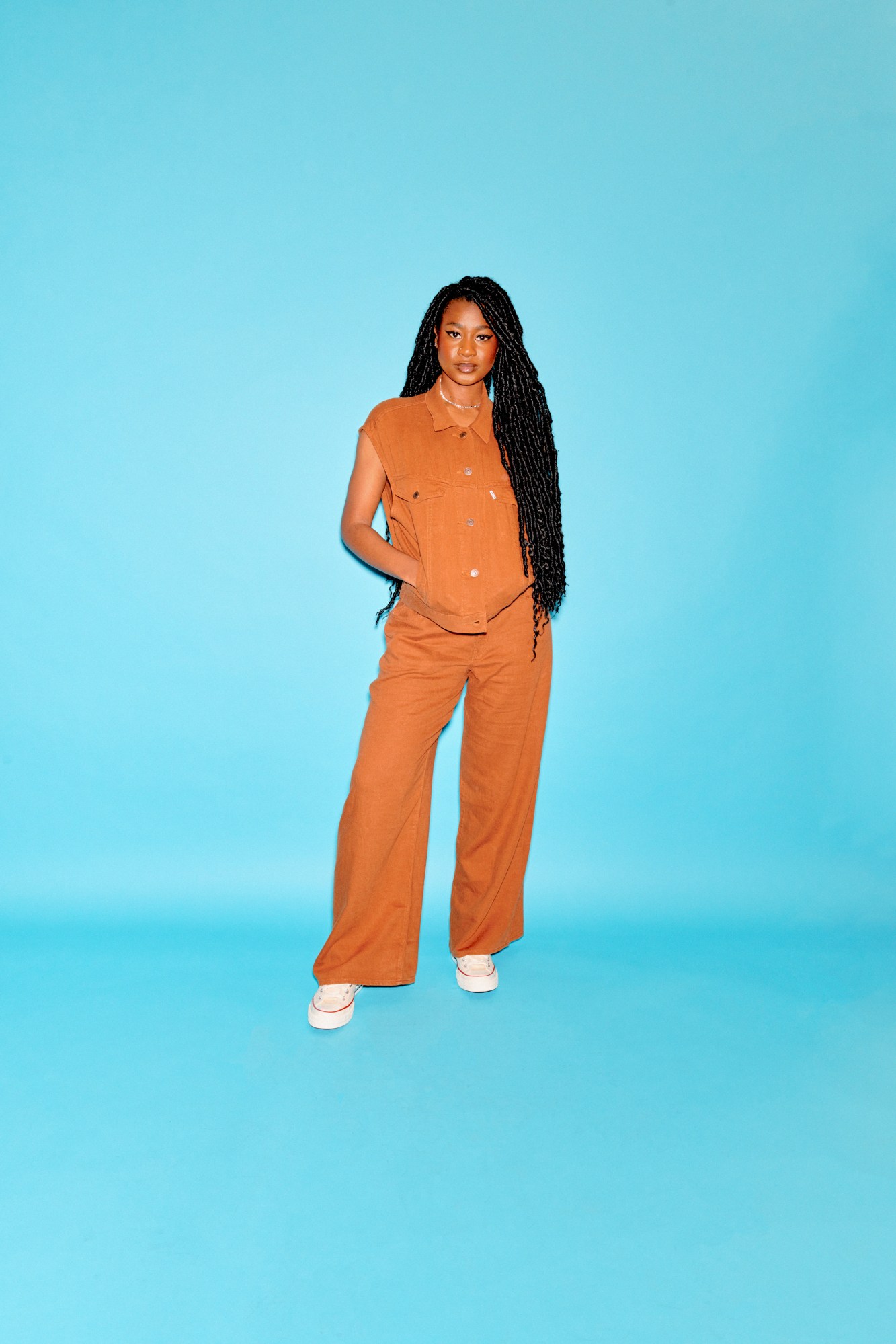 What do you do? Study fashion and drama. What are you wearing from head to toe? Levi’s® jacket and gingham co-ord. What do you love most about wearing jeans? The comfort and effortless feel and look. What’s your go-to style or fit of jeans? Wide-leg flares. Where in the world do you want to travel—and what jeans would you pack? Japan in tight jeans. Finish this sentence: only in jeans can I… slay.