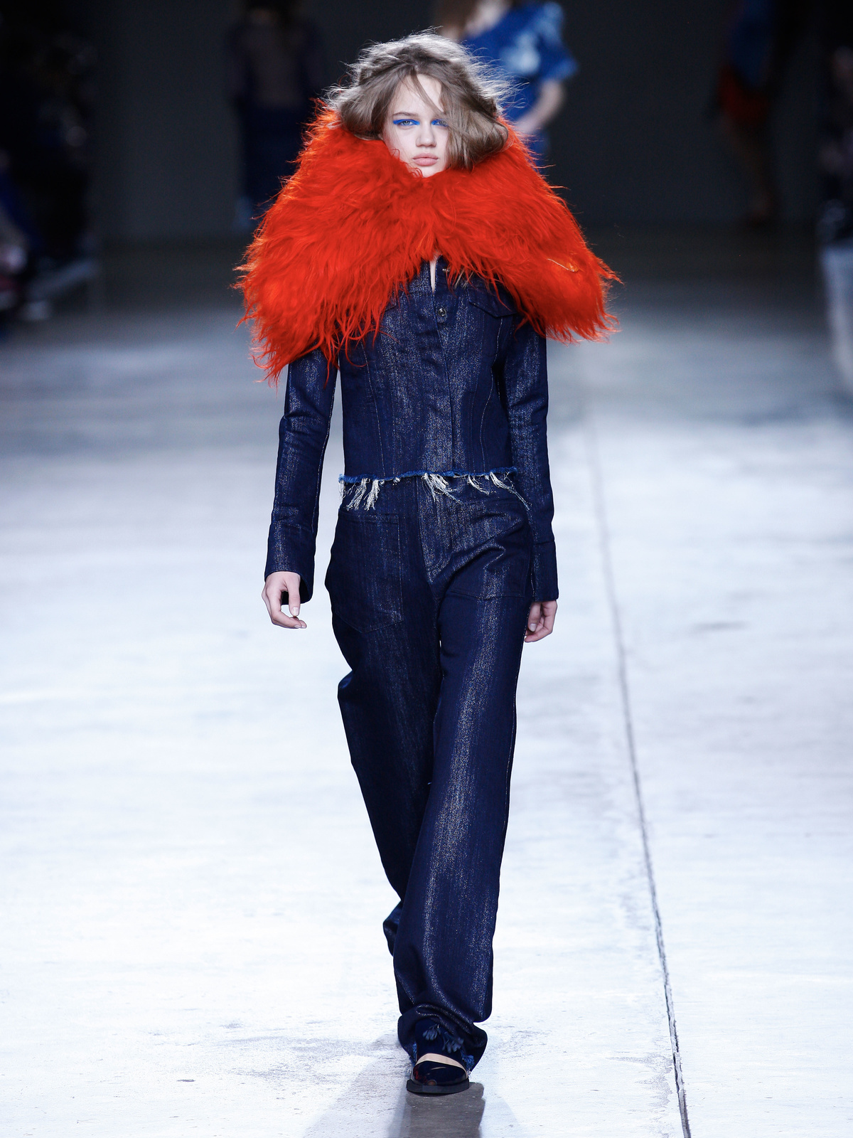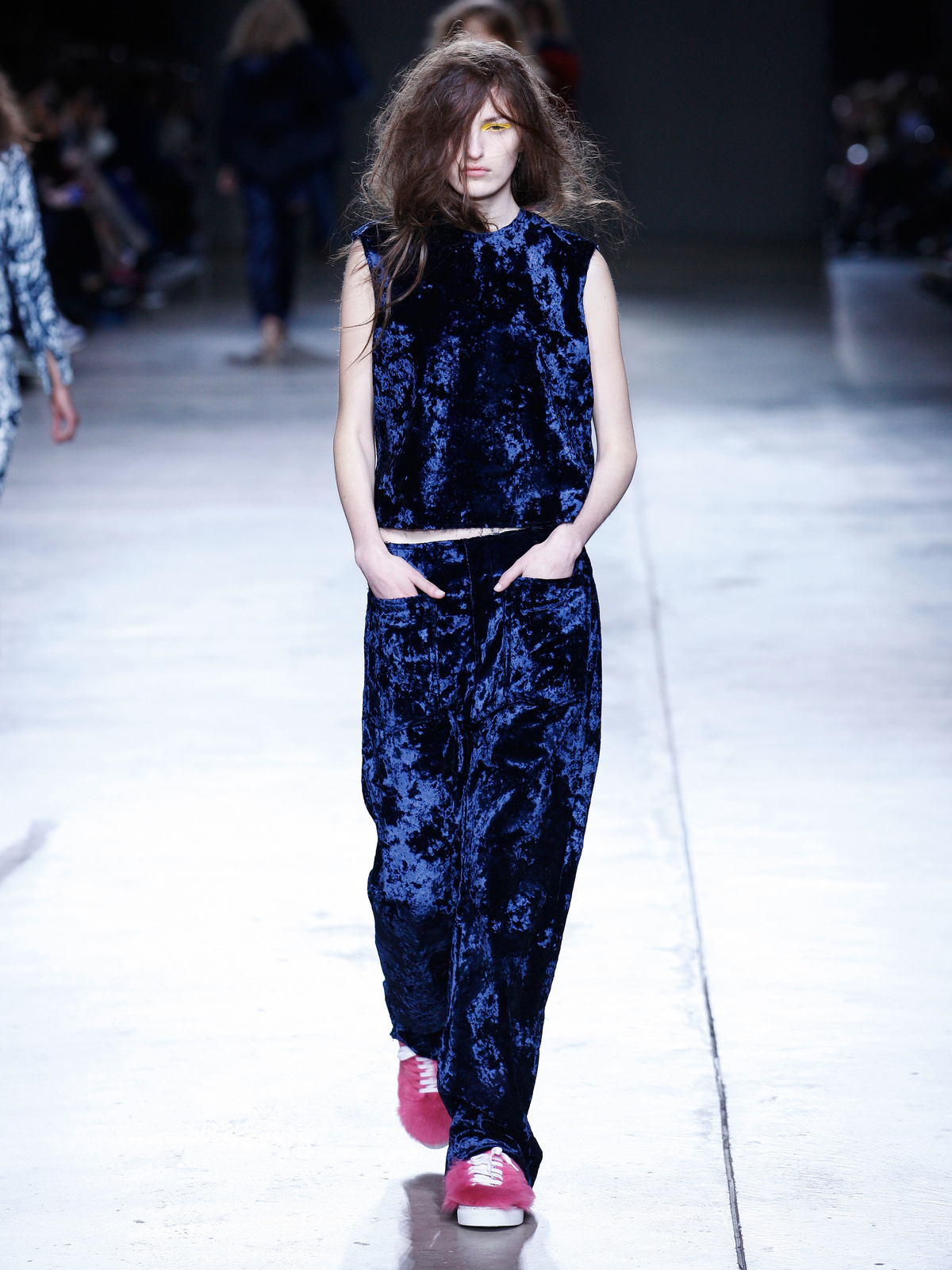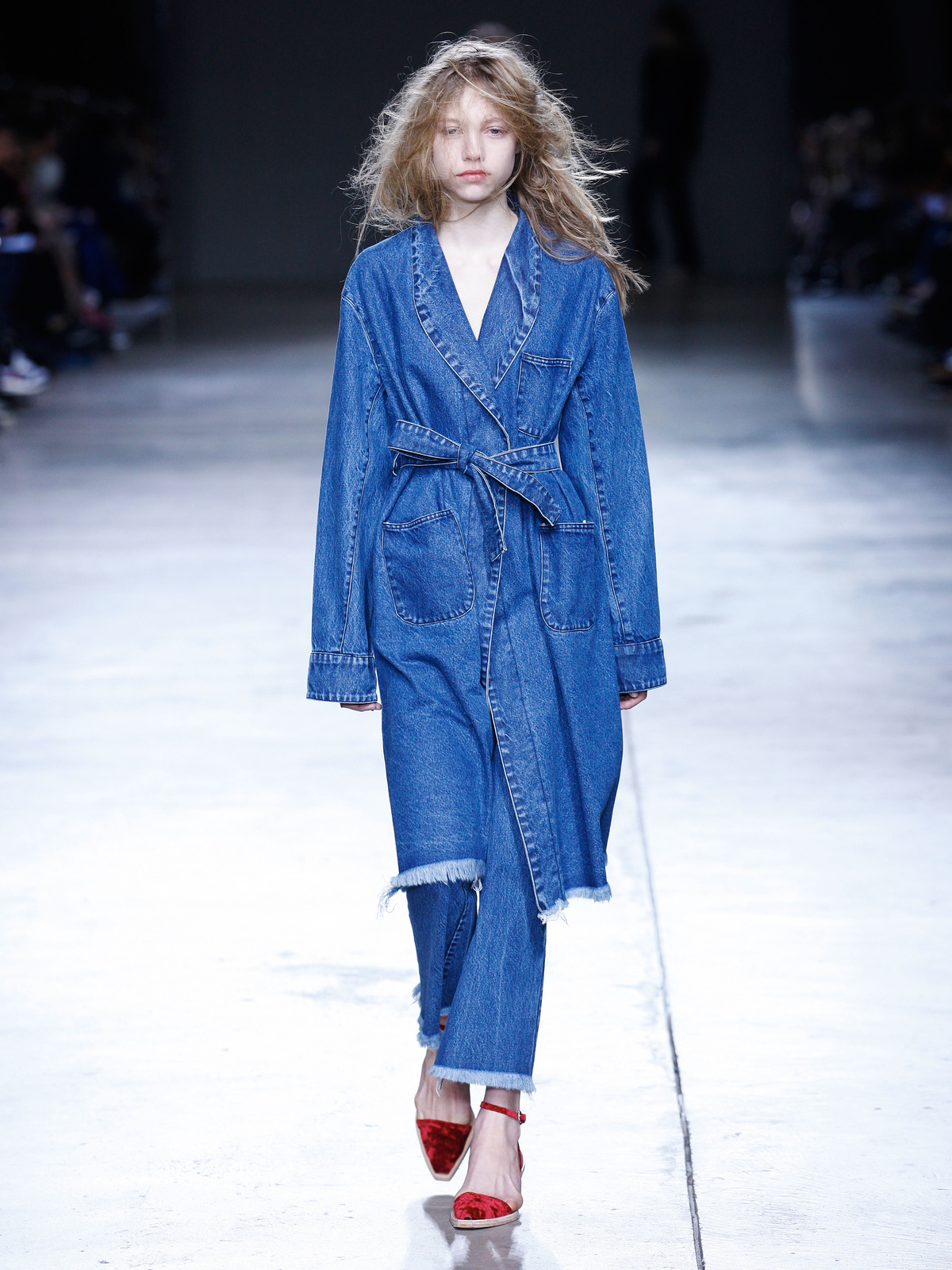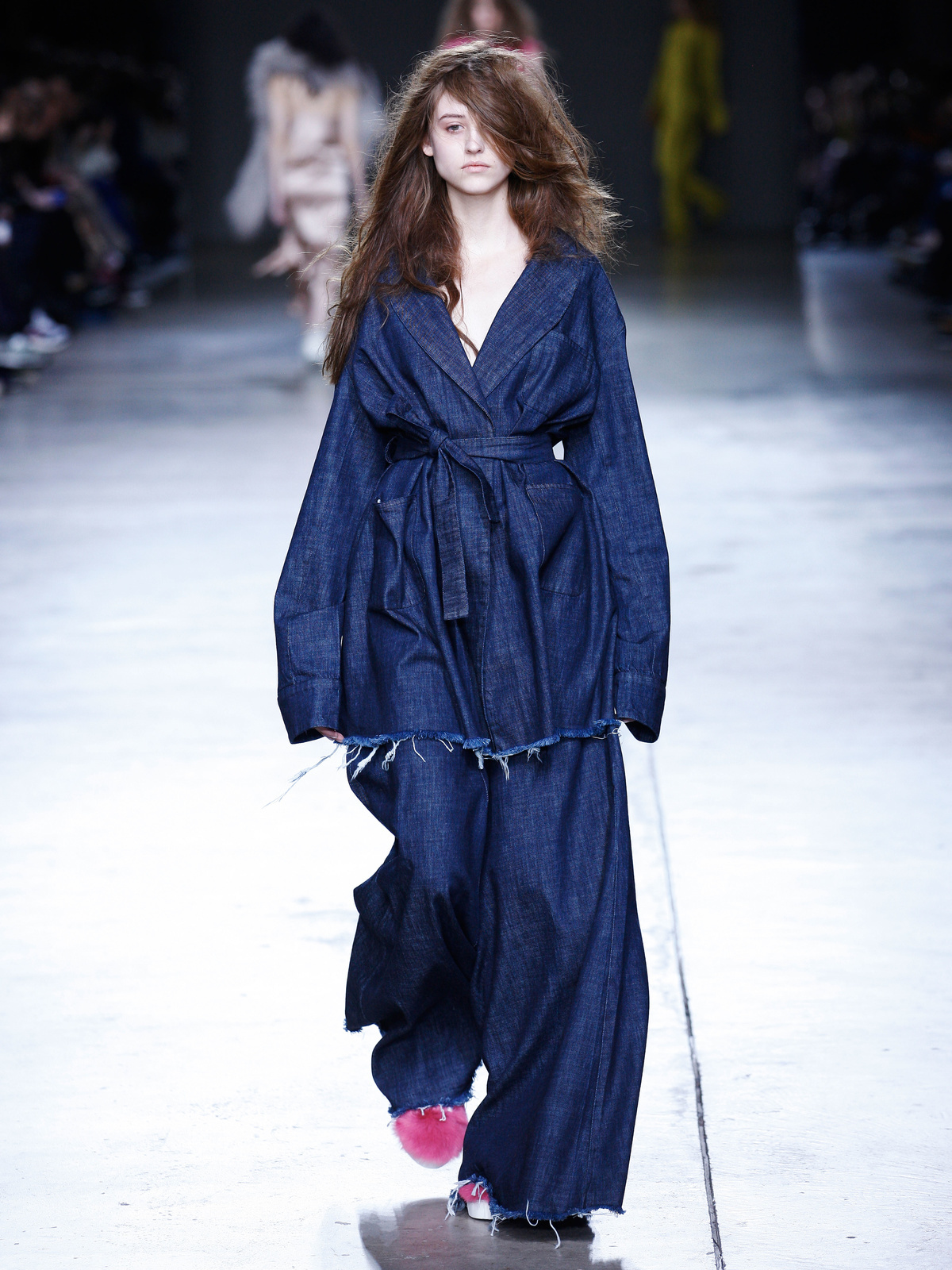 “Guitar bums and stoned-out beauties in Victorian dresses. Junkie poets, playwrights, broke-down filmmakers, and French actors. Everybody passing through here is somebody, if not in the outside world.” That was Patti Smith’s description in her book Just Kids, of New York’s Hotel Chelsea, where she lived with her boyfriend Robert Mapplethorpe in the 70s and again on her own in the 90s. The struggling artists, free minds, poets and musicians that passed through it’s doors are the inspiration for Marques’Almeida this season. Their trademark raw, frayed denim was mixed in with lush fur, crushed velvet and glamourous satin slip dresses. Trousers were hipsters and tops were off the shoulder. These are the world’s coolest new Chelsea girls…