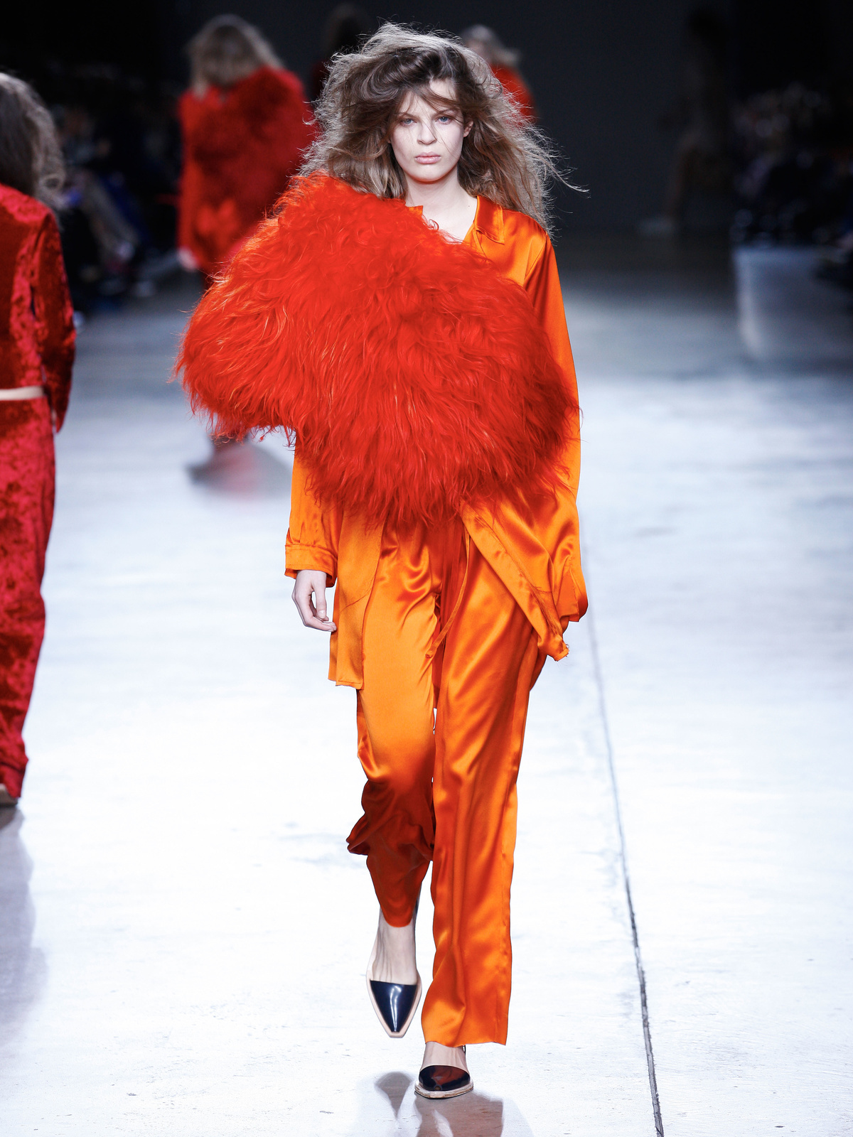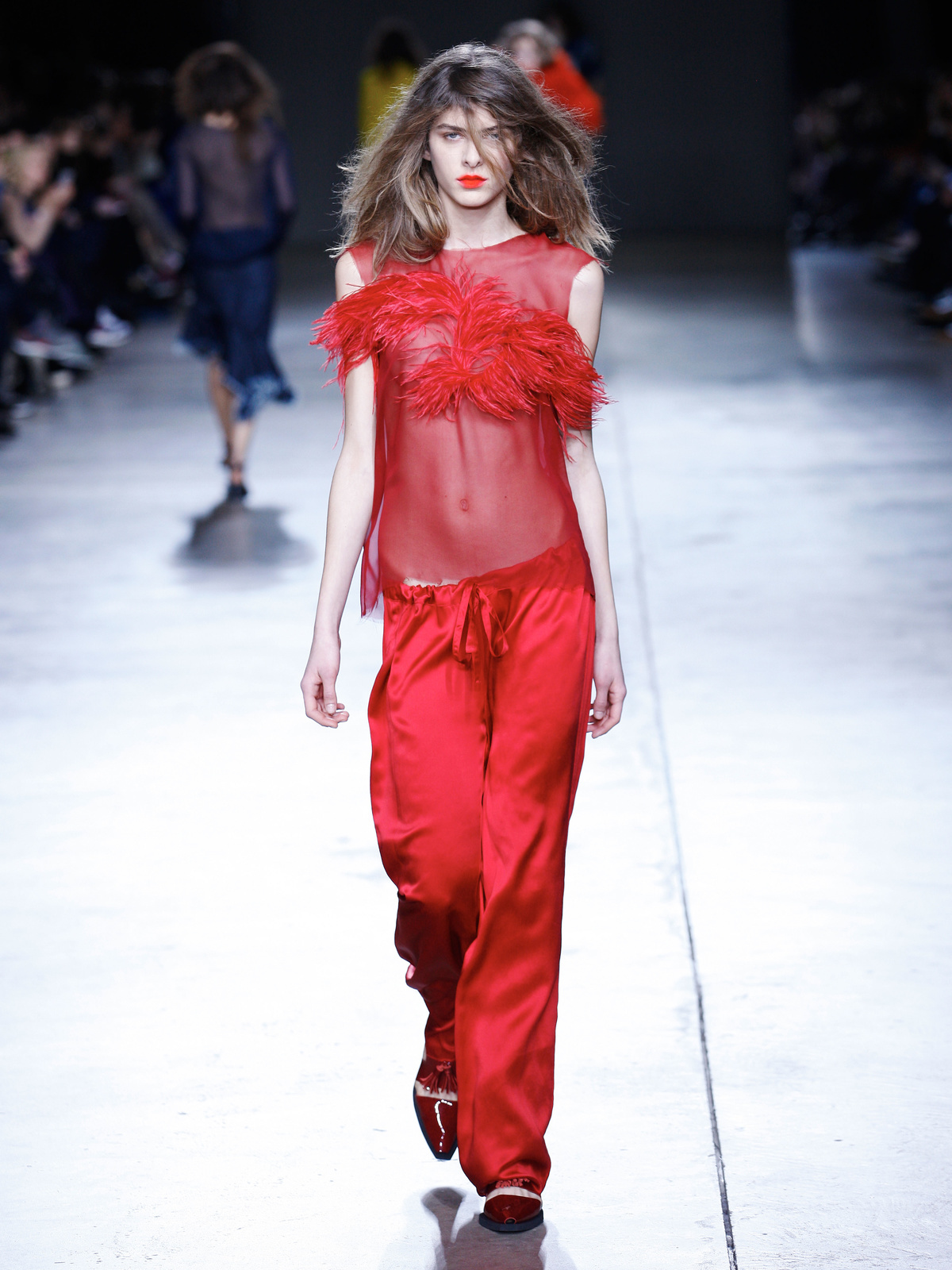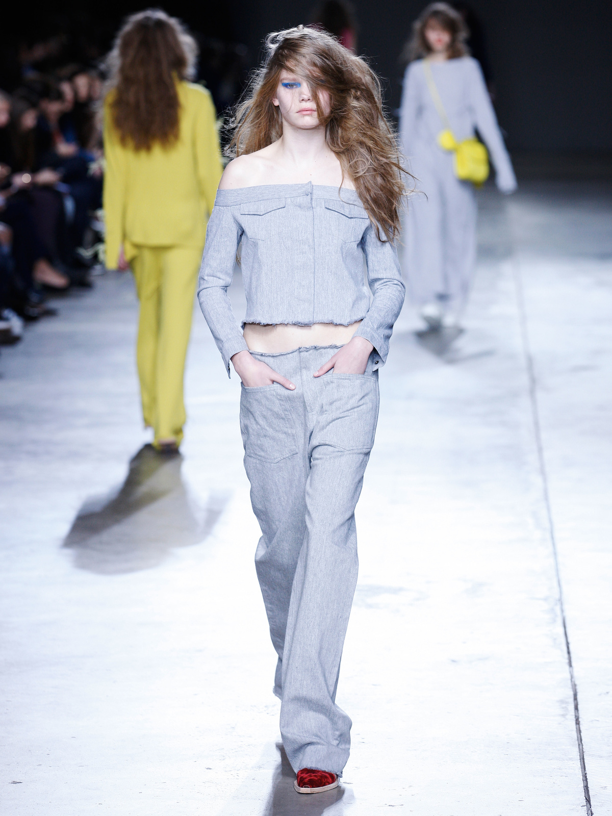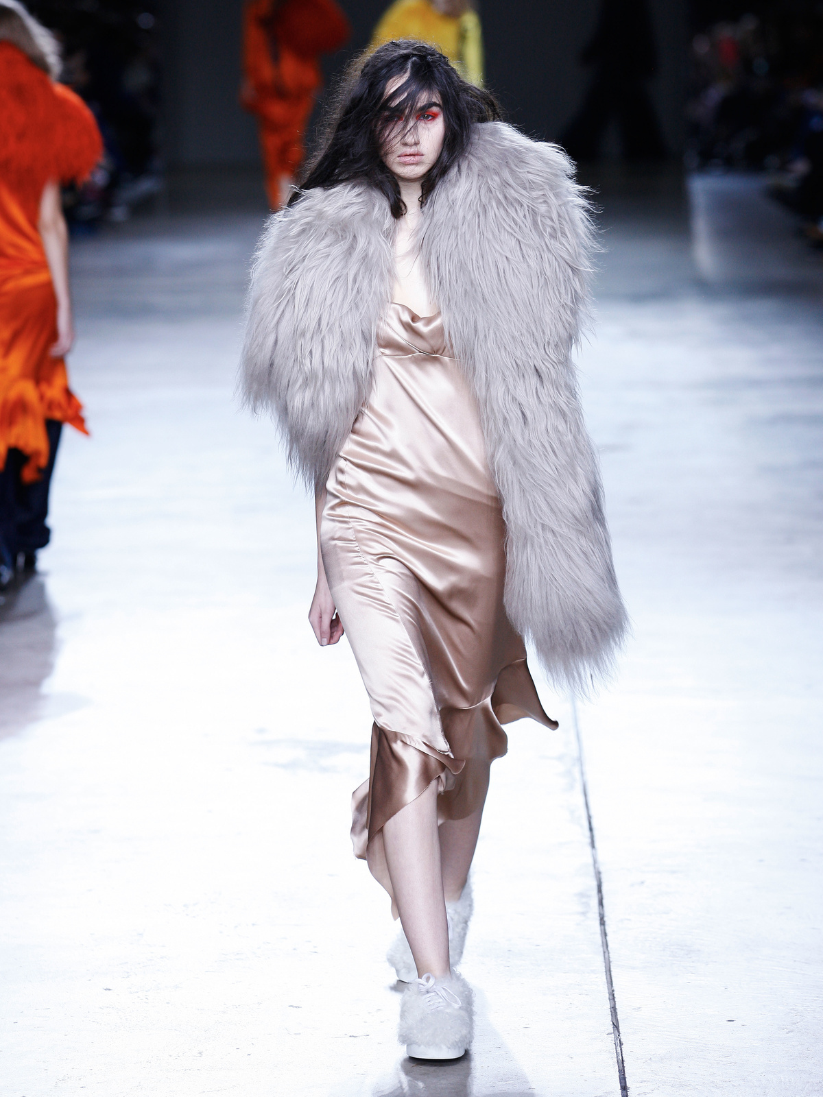 “Guitar bums and stoned-out beauties in Victorian dresses. Junkie poets, playwrights, broke-down filmmakers, and French actors. Everybody passing through here is somebody, if not in the outside world.” That was Patti Smith’s description in her book Just Kids, of New York’s Hotel Chelsea, where she lived with her boyfriend Robert Mapplethorpe in the 70s and again on her own in the 90s. The struggling artists, free minds, poets and musicians that passed through it’s doors are the inspiration for Marques’Almeida this season. Their trademark raw, frayed denim was mixed in with lush fur, crushed velvet and glamourous satin slip dresses. Trousers were hipsters and tops were off the shoulder. These are the world’s coolest new Chelsea girls…