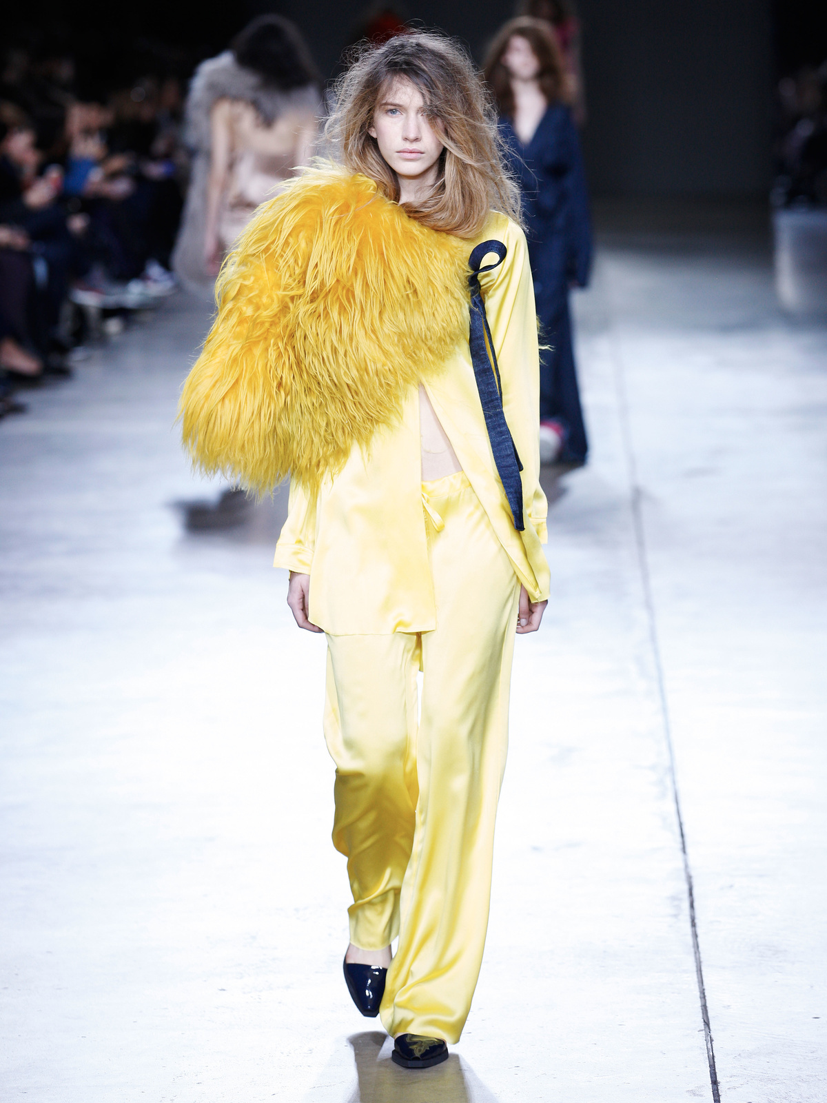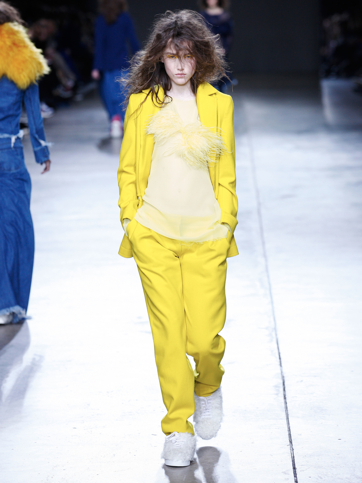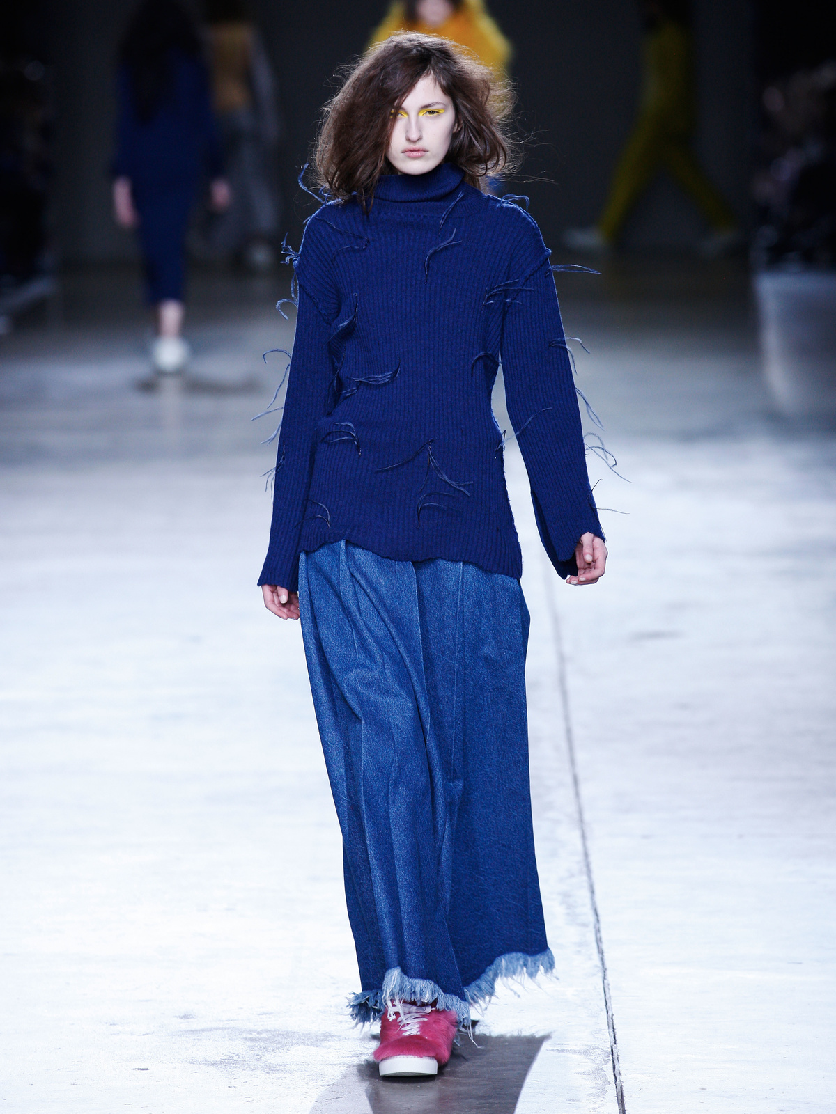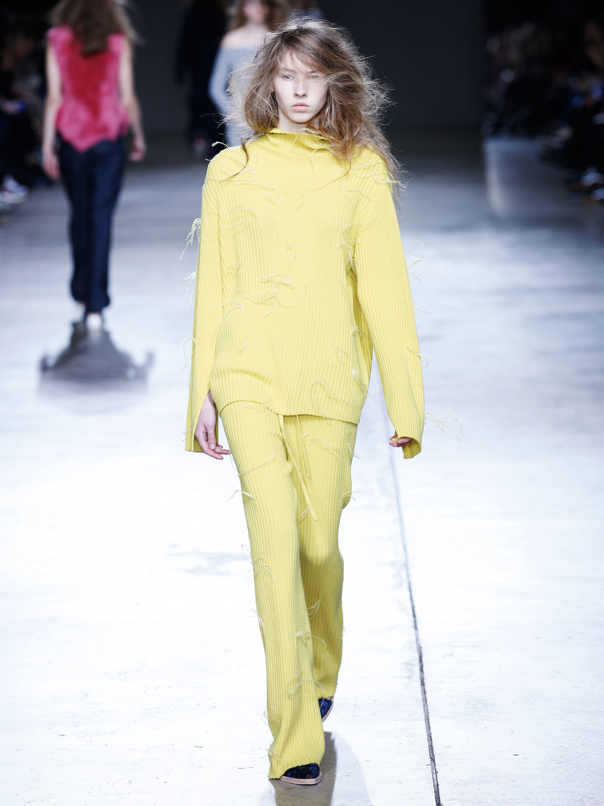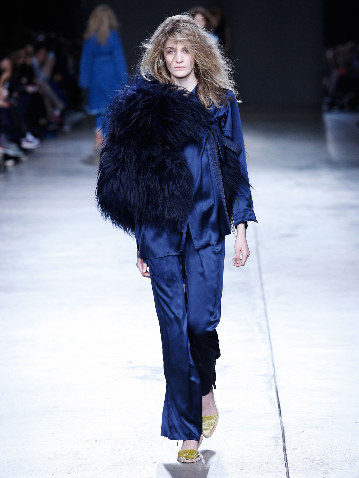 “Guitar bums and stoned-out beauties in Victorian dresses. Junkie poets, playwrights, broke-down filmmakers, and French actors. Everybody passing through here is somebody, if not in the outside world.” That was Patti Smith’s description in her book Just Kids, of New York’s Hotel Chelsea, where she lived with her boyfriend Robert Mapplethorpe in the 70s and again on her own in the 90s. The struggling artists, free minds, poets and musicians that passed through it’s doors are the inspiration for Marques’Almeida this season. Their trademark raw, frayed denim was mixed in with lush fur, crushed velvet and glamourous satin slip dresses. Trousers were hipsters and tops were off the shoulder. These are the world’s coolest new Chelsea girls…