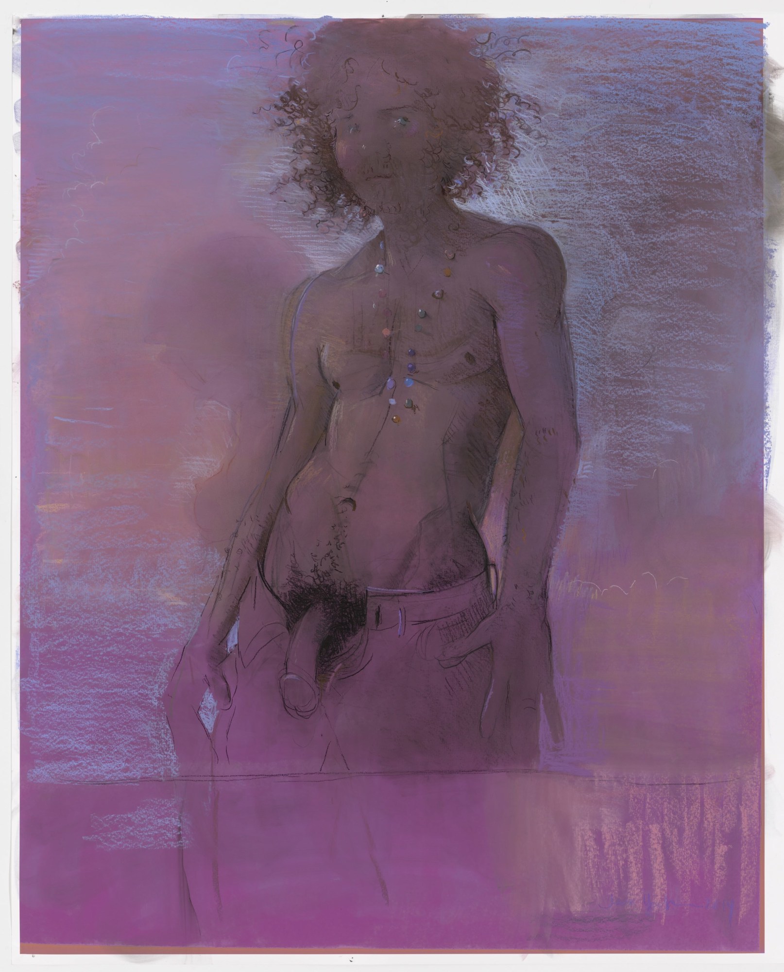 For the past 25 years, Lisa Yuskavage has painted women. Cartoonishly voluptuous, hypnagogic, usually nude women that seem aware of the viewer’s presence, recalling Barbara Kruger’s famous feminist work, Untitled (Your Gaze Hits The Side of My Face). “It’s weird, only painting women, right?” she laughed last week at the gallery. Though recently, men have been moving from background figures in her paintings to main subjects. In her latest exhibition at David Zwirner, the painting Hippies, showing an array of multicolored characters fanning out behind a female deity, is the center of a show that features both male and female hippies, as a tribute to the community of adults she was surrounded by as a child. “I try to never edit anything out of my work,” Lisa said.