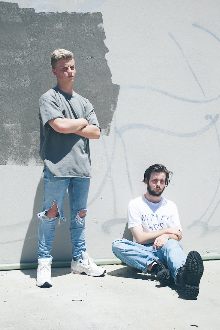 Thomas: Canvas printed shirt, misbhv after dark sweatshirt, self-distressed cowboy jeans, y3 retro boosts in blue.