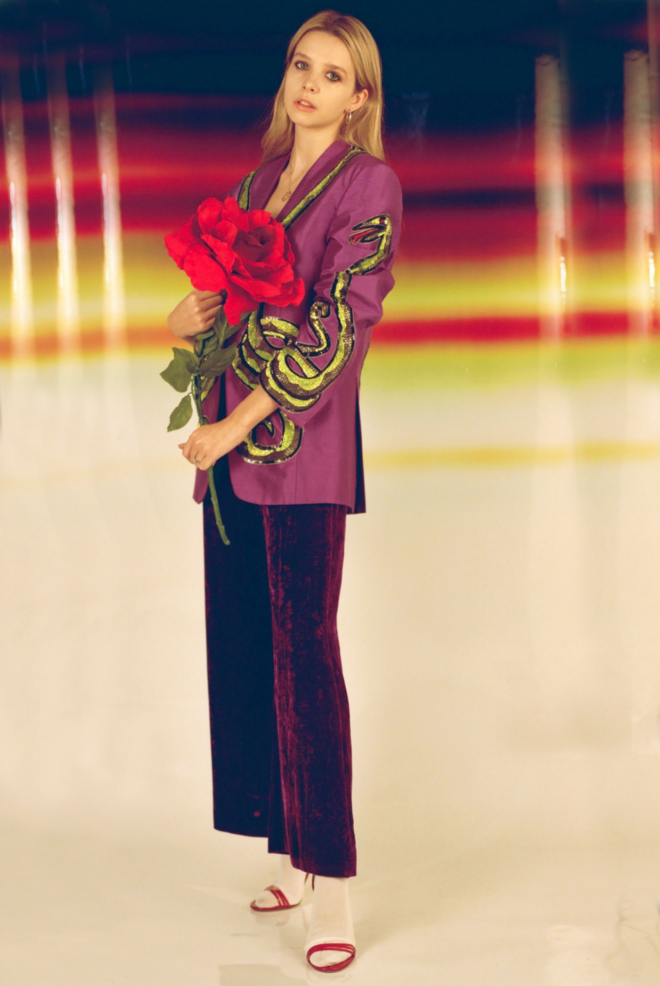 Reflecting on time spent in Athens for a recent show, Faye remembers the beauty she discovered there and the inspiration she took from it. “We went up to the peak of a mountain, as if closer to the gods. The belly of the church, at the very tip of the mountain, had walls covered in paintings…” she beams, “like El Greco, folds of velvet with fish lying within every dip. An old lady with eyes like blue planets gave me a wink, it broke my heart.” Funnily enough, Faye Wei Wei, you break ours. Text Frankie Dunn