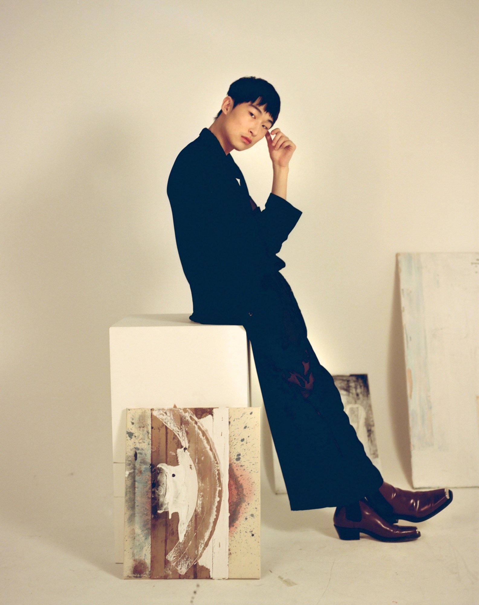 Sang Woo was the first Korean model to saunter down a Burberry runway. We’ve lost track of how many editorials his machete-sharp cheekbones have graced. And while the model-come-artist inevitably learnt a lot about angles and light from his posing days, one lesson stuck above all: “It challenged my commitment to my art,” he tells us. “I think it was a necessary hurdle for me to take in order to be able to really pursue what I wanted.”