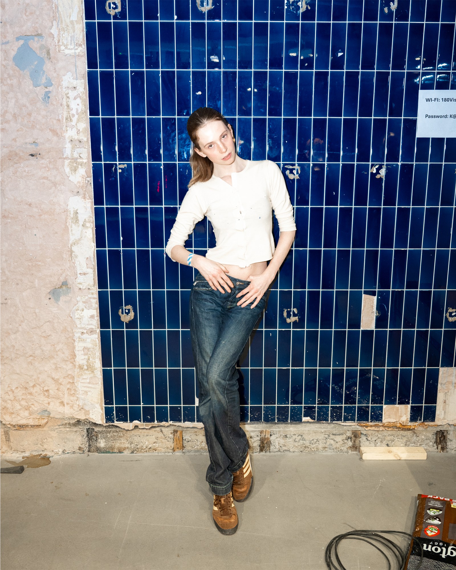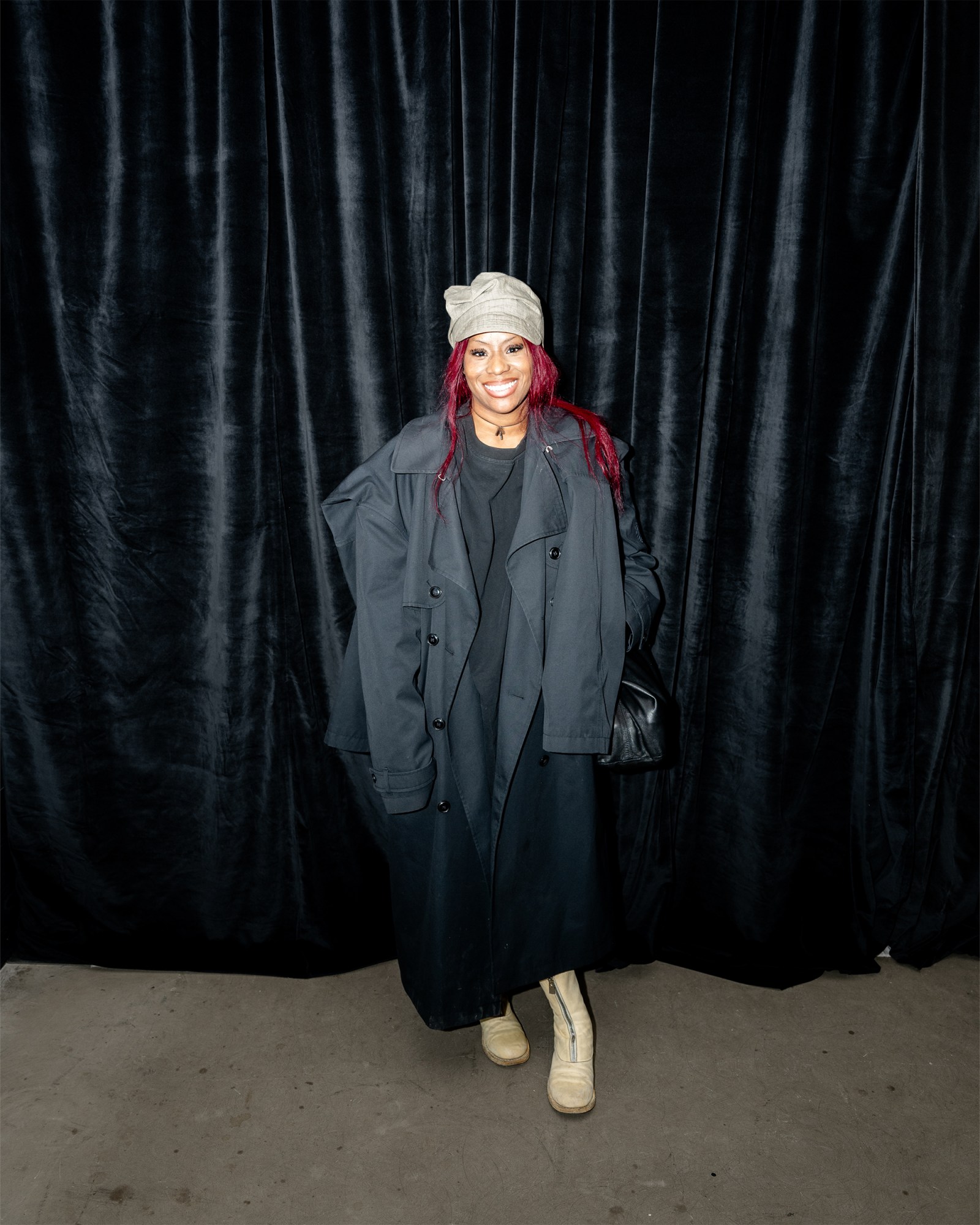 What do you do? I’m a musician. Where are you from? Essex, but I live in London now. What are you wearing? C’est nous. Favorite show so far? Simone Rocha. Where’s best to shop? Glastonbury vintage shops. Who is your style icon? Björk. Fashion week survival tip? Ankle supports. Go-to snack between shows? Wasabi peas.