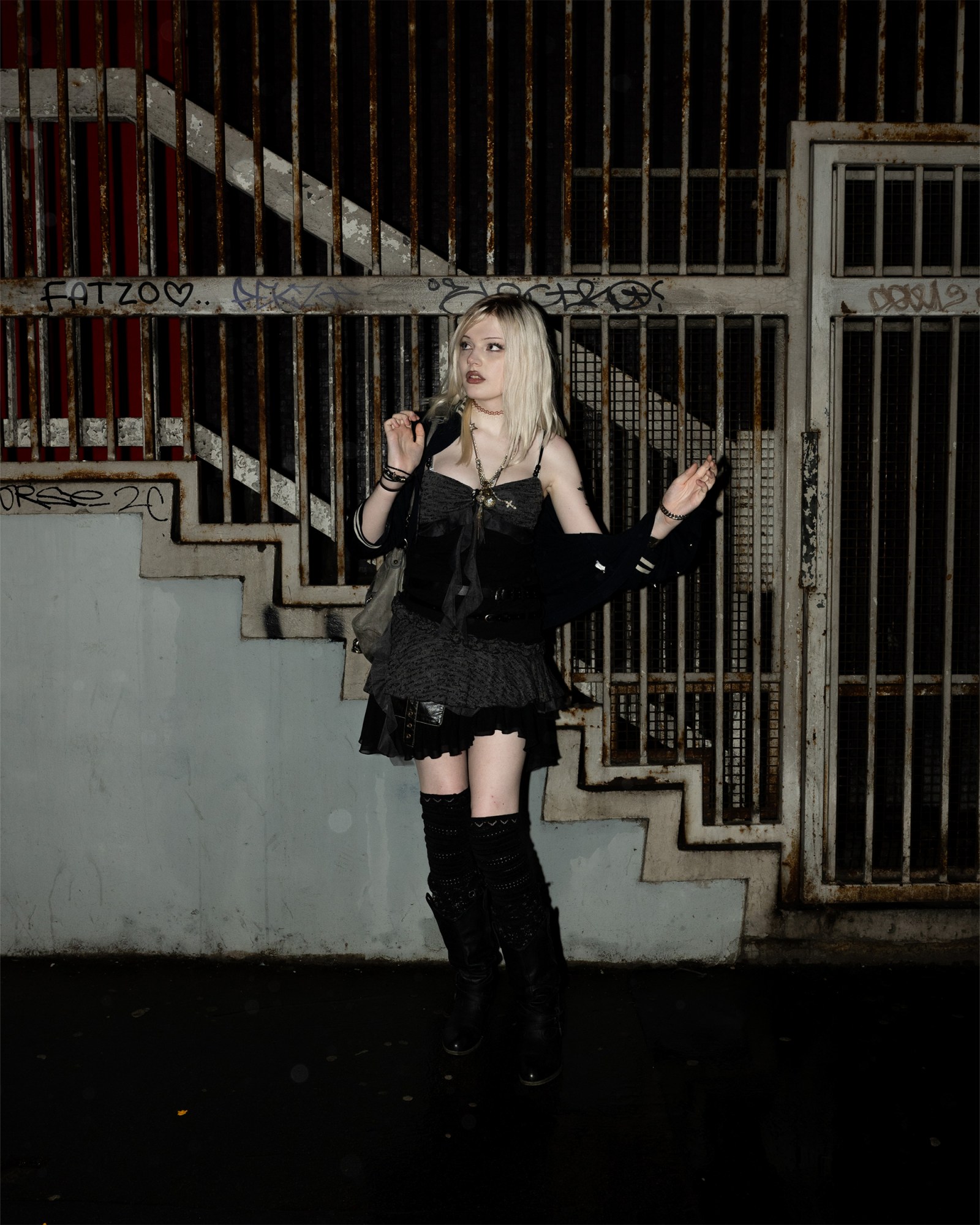What do you do? Music Student. Where are you from? Leigh on Sea, Essex. What are you wearing? Poizen Industries. Where’s best to shop? Vinted. Who is your style icon? 2000’s Harajuku street style. Go-to snack between shows? Belvita Bar.