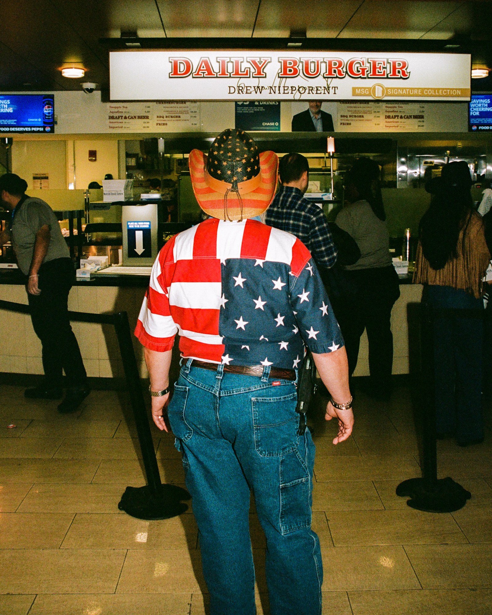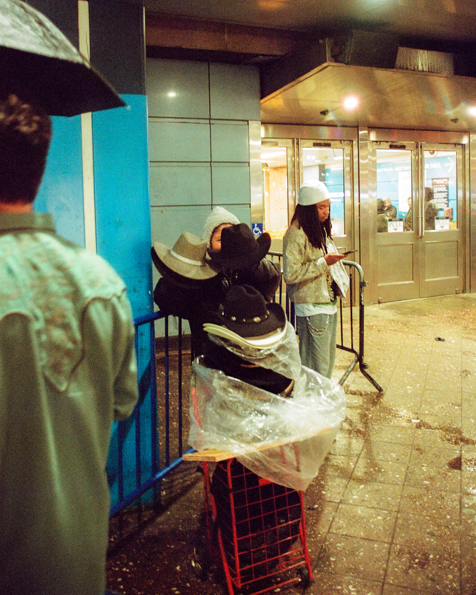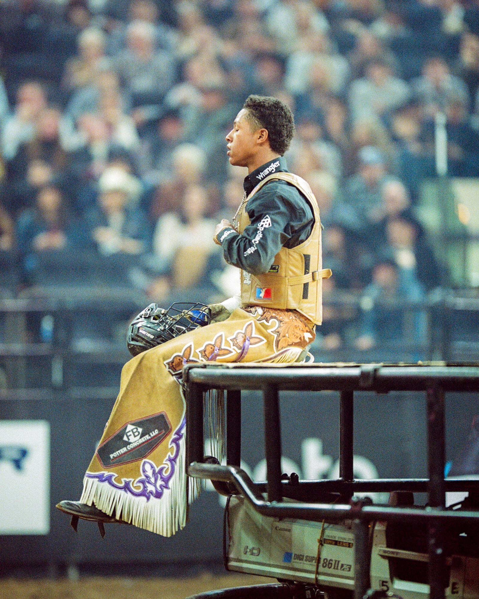 I arrive early and am greeted by the smell of manure as I make my way toward the press suite. Crew members in cowboy hats move across the space, adjusting gates and testing lights. The arena taking its new form. The day begins with the Running of the Bulls, late in their arrival after being momentarily folded into the Midtown gridlock alongside morning commuters and tourists alike. Each bull is guided up a winding five-flight ramp into the building.