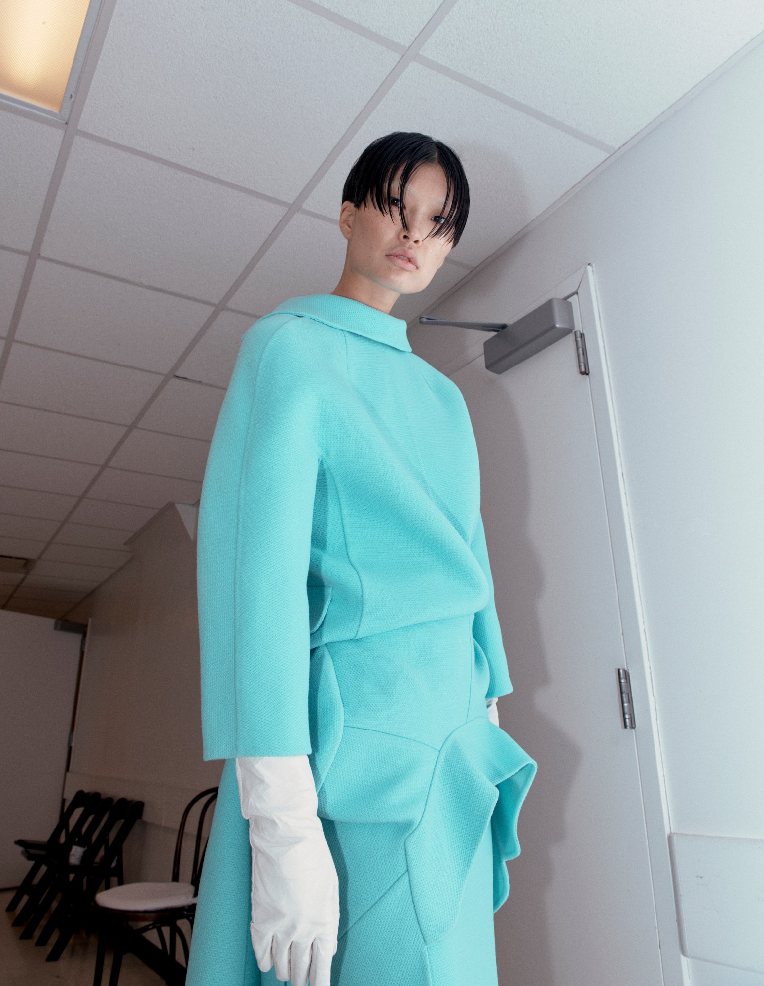 With this collection, Marc continued to play with volume and silhouette as he’s been known to do over the past few years, but his experimental takes on outerwear, eveningwear and everything in between represent a constant evolution, not repetition. It’s what art is meant to do, and as the show notes quote Friedrich Nietzsche, “We have art in order not to die of the truth.”