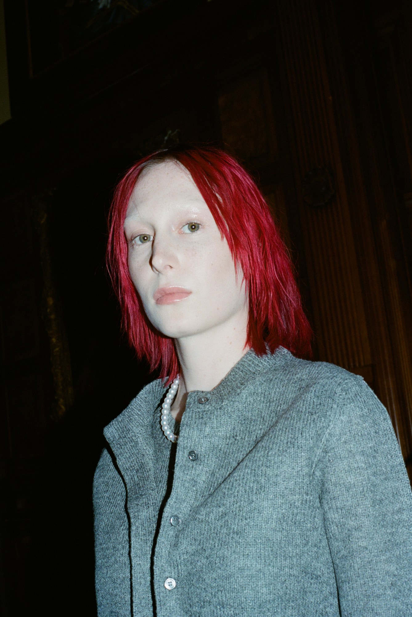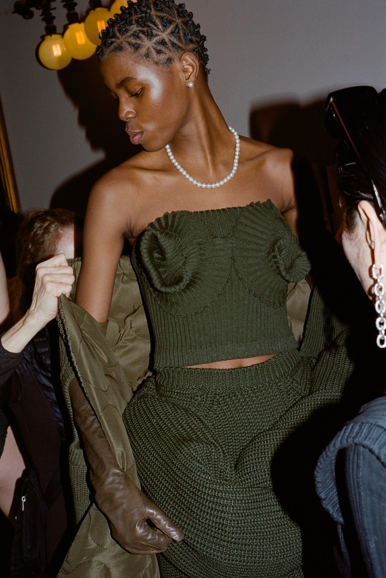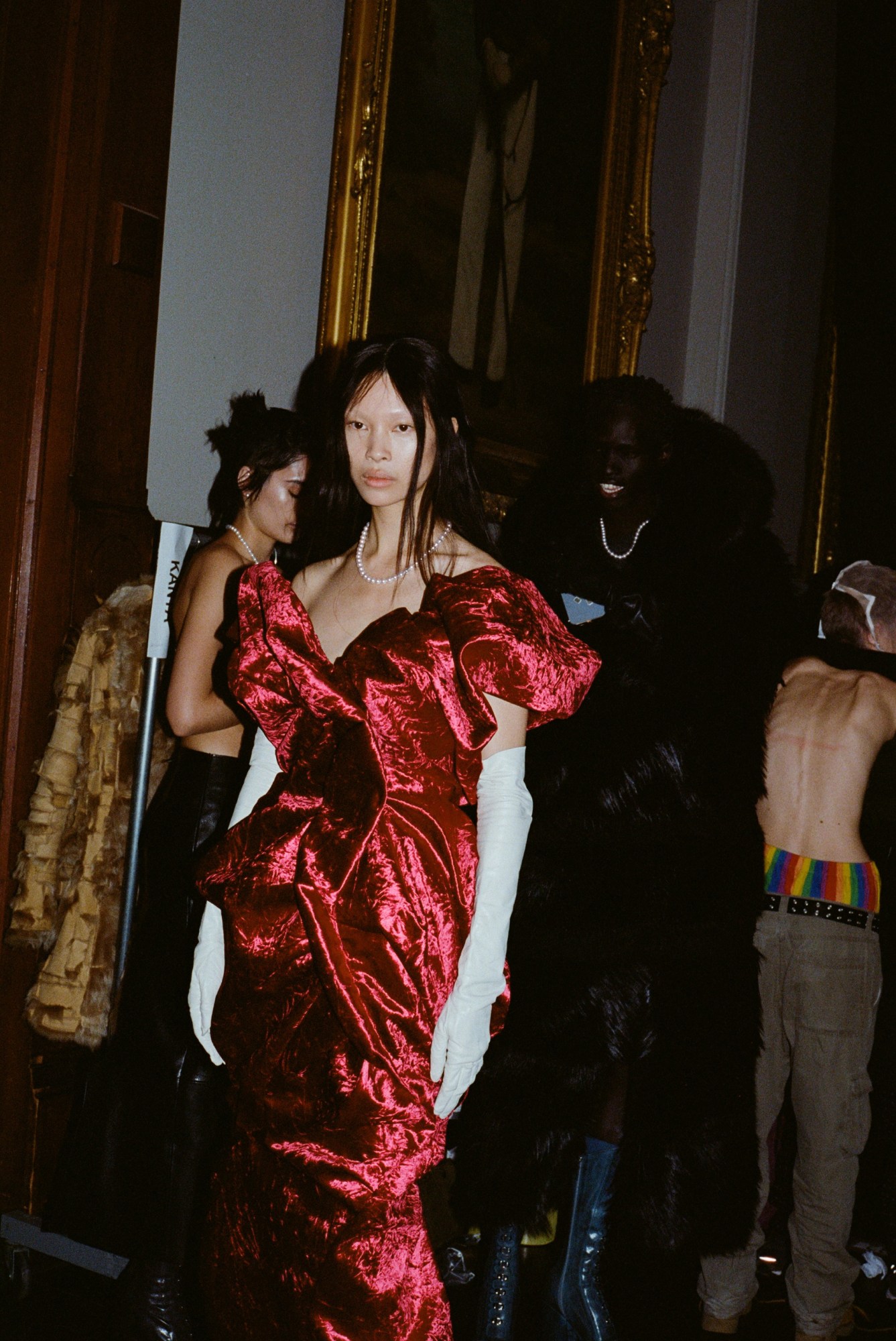Marc: We were looking back at the collection before and thinking about what was worth looking at again. Part of that conversation was those tie-back dresses which were bunched up onto a corset base. Then, when I interviewed Andre Walker for i-D, he told me he saw Vivienne Westwood in that collection. “You’re absolutely right,” I said. There is always a bit of Comme, but I think that our approach to the last collection had much more to do with what I’ve learned from Vivienne. We put a little placeholder in, which was something we wanted to look at and keep, and that was before Vivienne died.