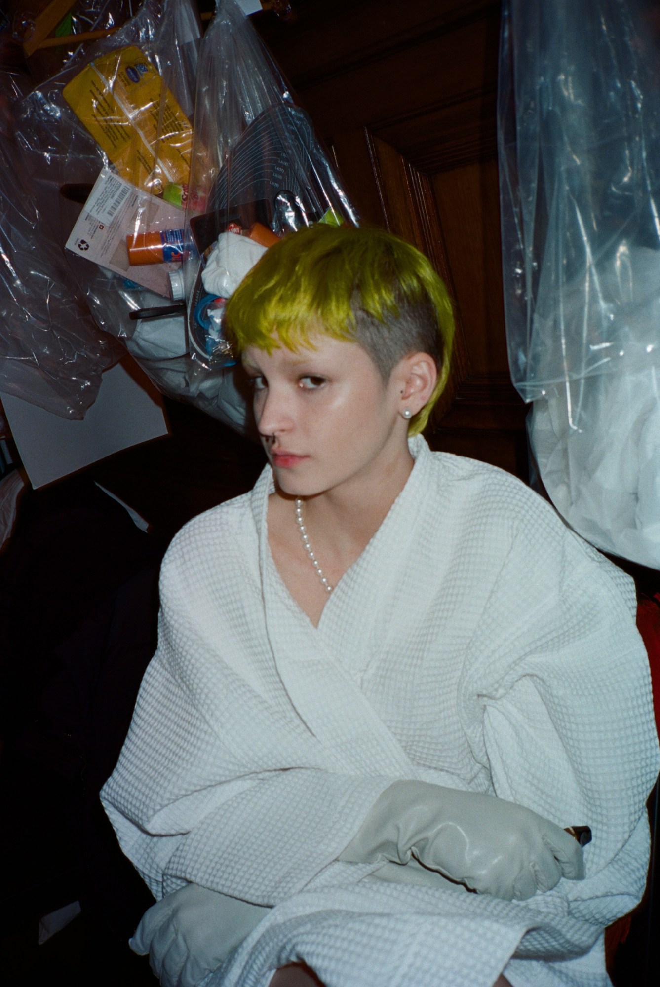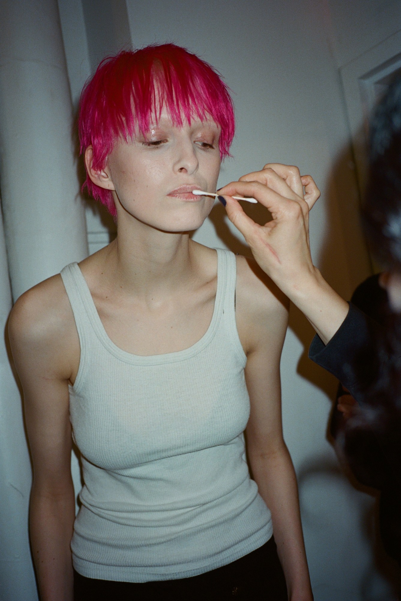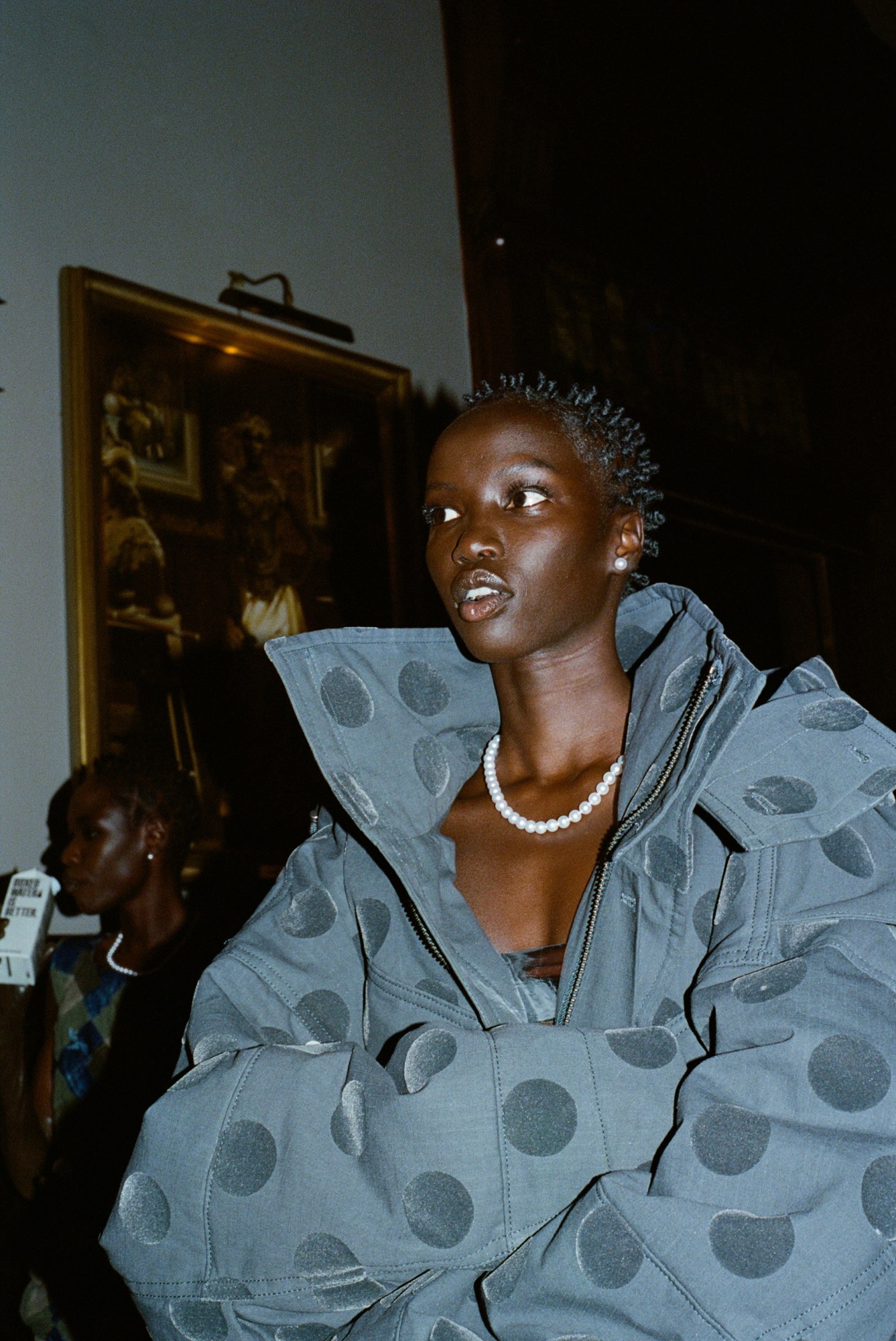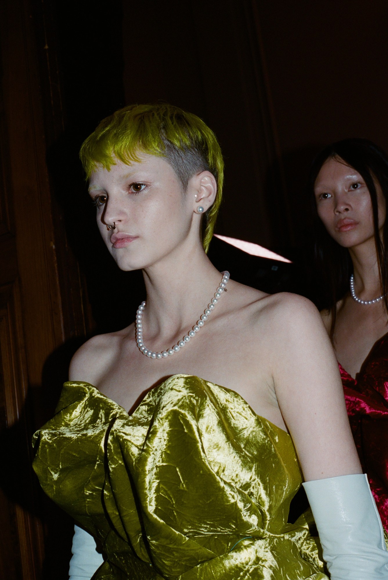 Marc: We were looking back at the collection before and thinking about what was worth looking at again. Part of that conversation was those tie-back dresses which were bunched up onto a corset base. Then, when I interviewed Andre Walker for i-D, he told me he saw Vivienne Westwood in that collection. “You’re absolutely right,” I said. There is always a bit of Comme, but I think that our approach to the last collection had much more to do with what I’ve learned from Vivienne. We put a little placeholder in, which was something we wanted to look at and keep, and that was before Vivienne died.