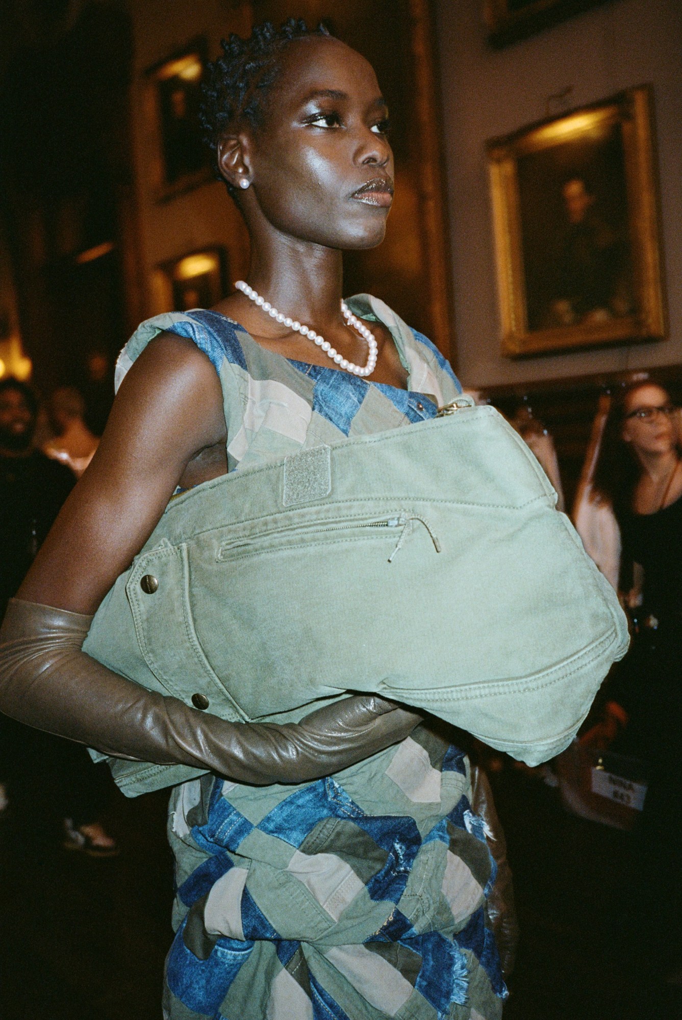 There were other things, too – like every day I was wearing a green cargo skirt from Balenciaga. I was living in it; I wouldn’t take it off. Like: “This is my new uniform. I’m not interested in any other clothes. I’m not wearing anything but this.” And so I felt very strongly about the fabrics that come from military clothes, and that colour palette. We talked a lot about whether that was appropriate – Joseph, who’s the head of women’s design, said, “I think we should be careful because we live in a world where war and destruction is very present, and I think it may be insensitive to use army clothes, to upcycle army clothes in that way.”