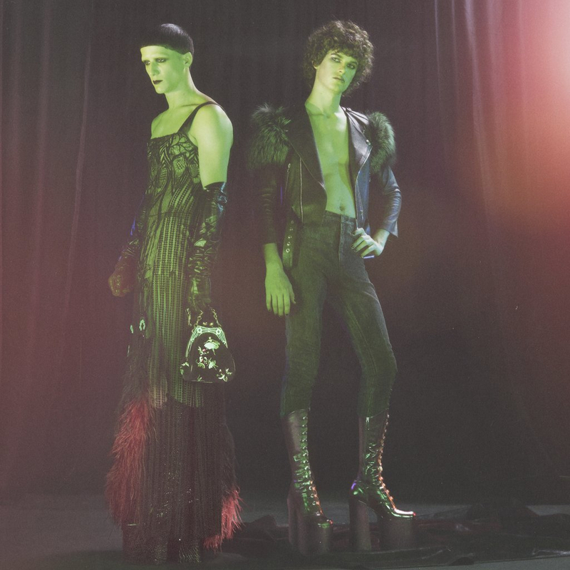 John Tuite and Carlos Santolalla — the first gay couple to sign to a modeling agency — appear wearing the brand’s women’s collection. Their image references New York legends Lou Reed and Robert Mapplethorpe. Former i-D covergirls Binx Walton, Julia Nobis, and Grace Bol make an appearance alongside models Cheyenne Keuben, Riley Montana, Flo Dron, Sarah Abney, Ally Ertel, and Estella Boersma. Marc wrote that he felt they all “effortlessly breathe a unique quality of life into the clothes.”