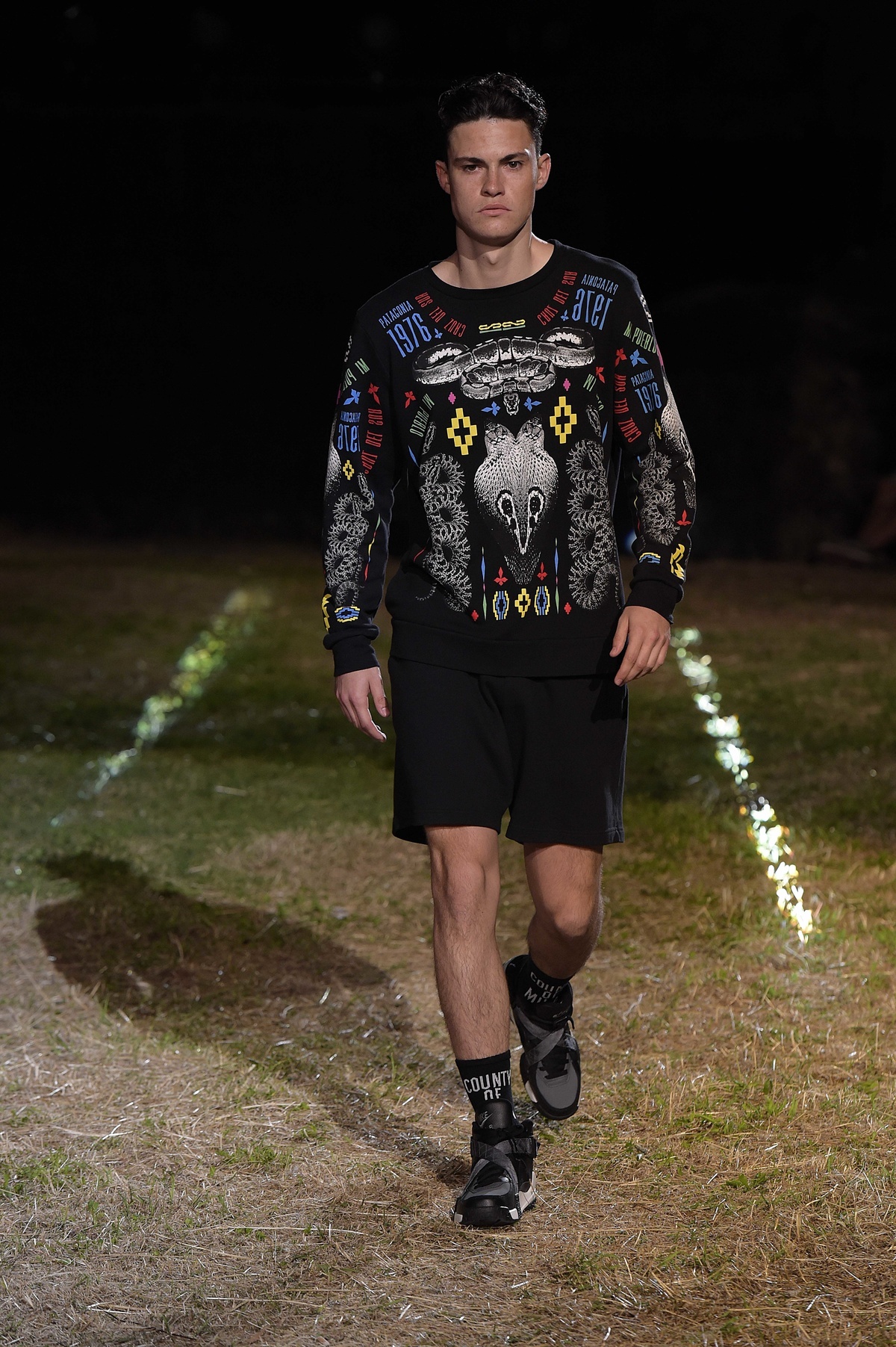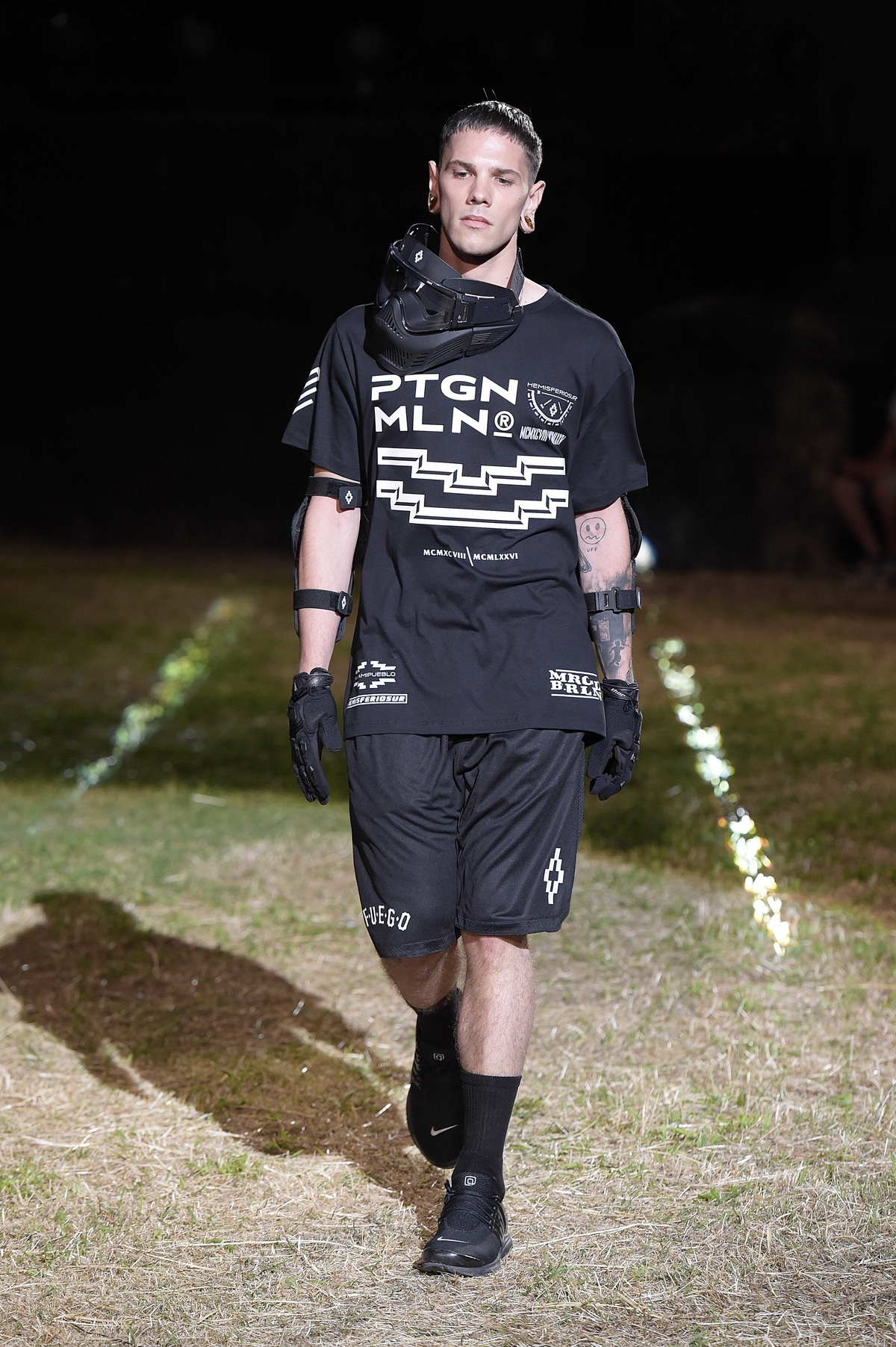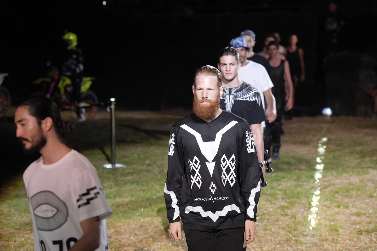 For a Pitti season that’s been all about Florentine fashion royalty – Pucci, Gucci, etc. – it was only appropriate to end on a rebellious note. After all, the culture of this magnificent city was built on an insatiable desire for the new, whether it was art, architecture or indeed fashion. Italy’s number one purveyor of fun, Marcelo Burlon was the perfect choice for the challenge. On Thursday evening, the Italian-blooded Argentinean art director and party promoter rang out Pitti with his second collection for the eponymous label he founded under his umbrella company County of Milan. “They wanted me to do a party, but that’s what I do every week,” he told i-D after the show. “I wanted to do something bigger than a party.”