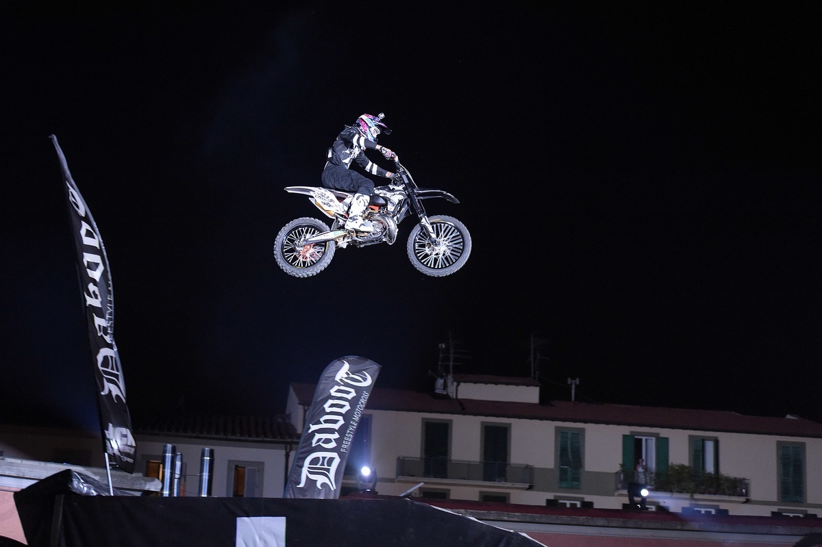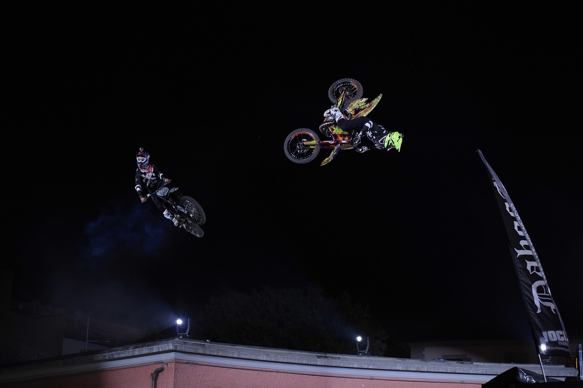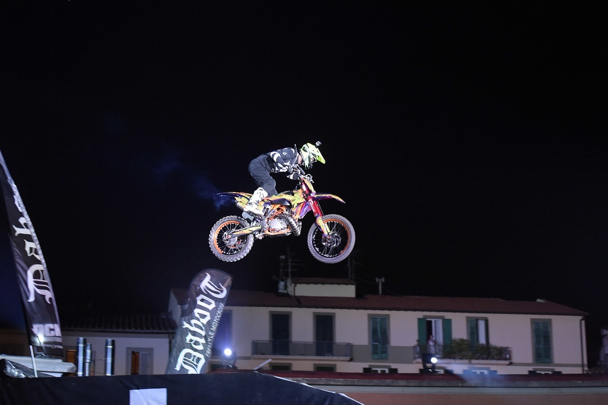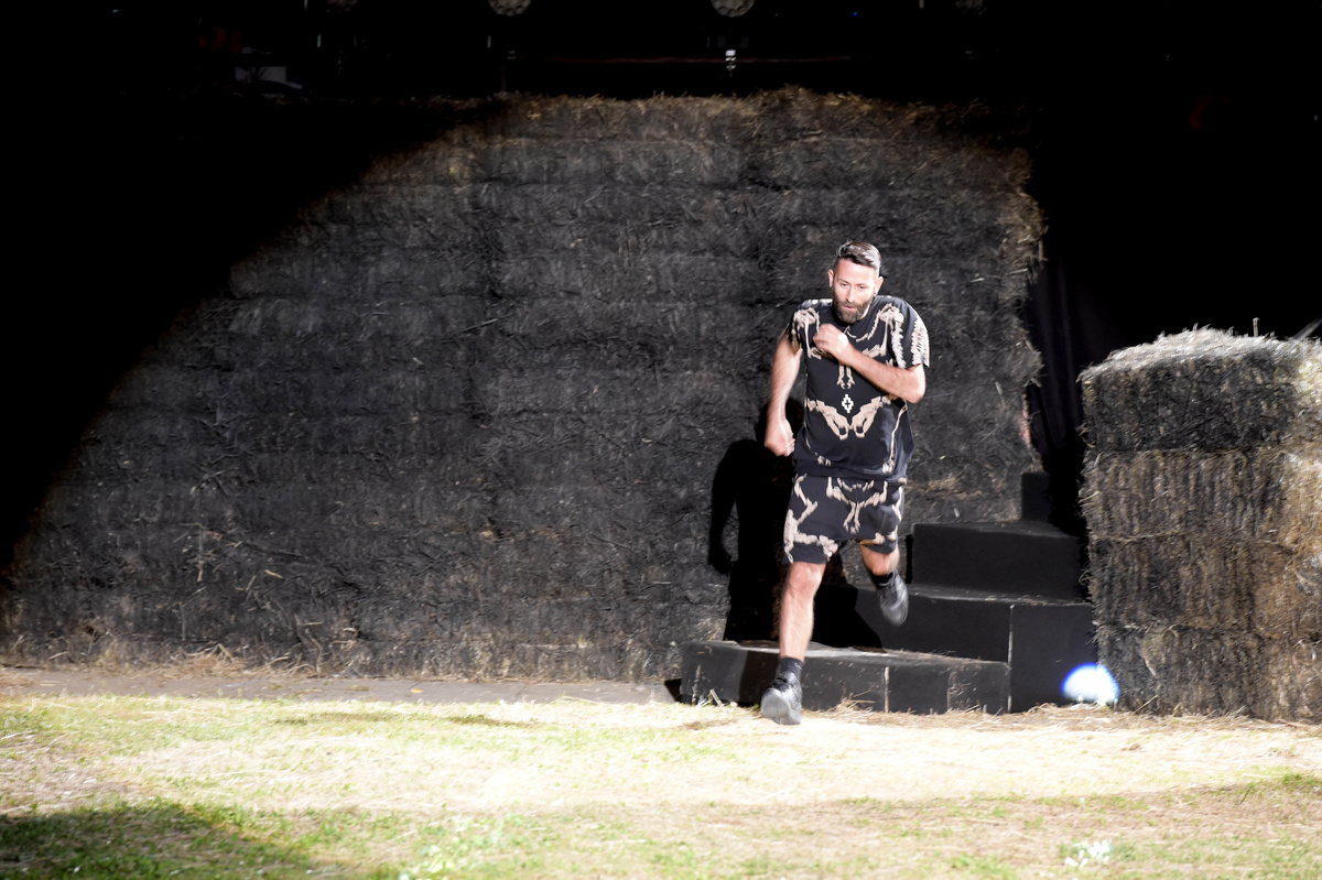 Burlon wasn’t playing around. Inspired by his childhood growing up with a race erector father in Patagonia, the blacked-out 10 PM show kicked off with a series of motocross jumps, guests gasping around the outdoor ring catwalk which had been fitted with a giant ramp. “It feels so sexy. It’s so sexy, right?” Burlon insisted after the show, his signature charm intact. And while there’s no denying the allure of petrol fumes and the sound of wheels accelerating in the dirt, more than sexy the show felt incredibly honest. For a while, Burlon had been hanging out with the Italian motocross champions, who opened his show, and his appreciating for their passion and aesthetic was undeniable.