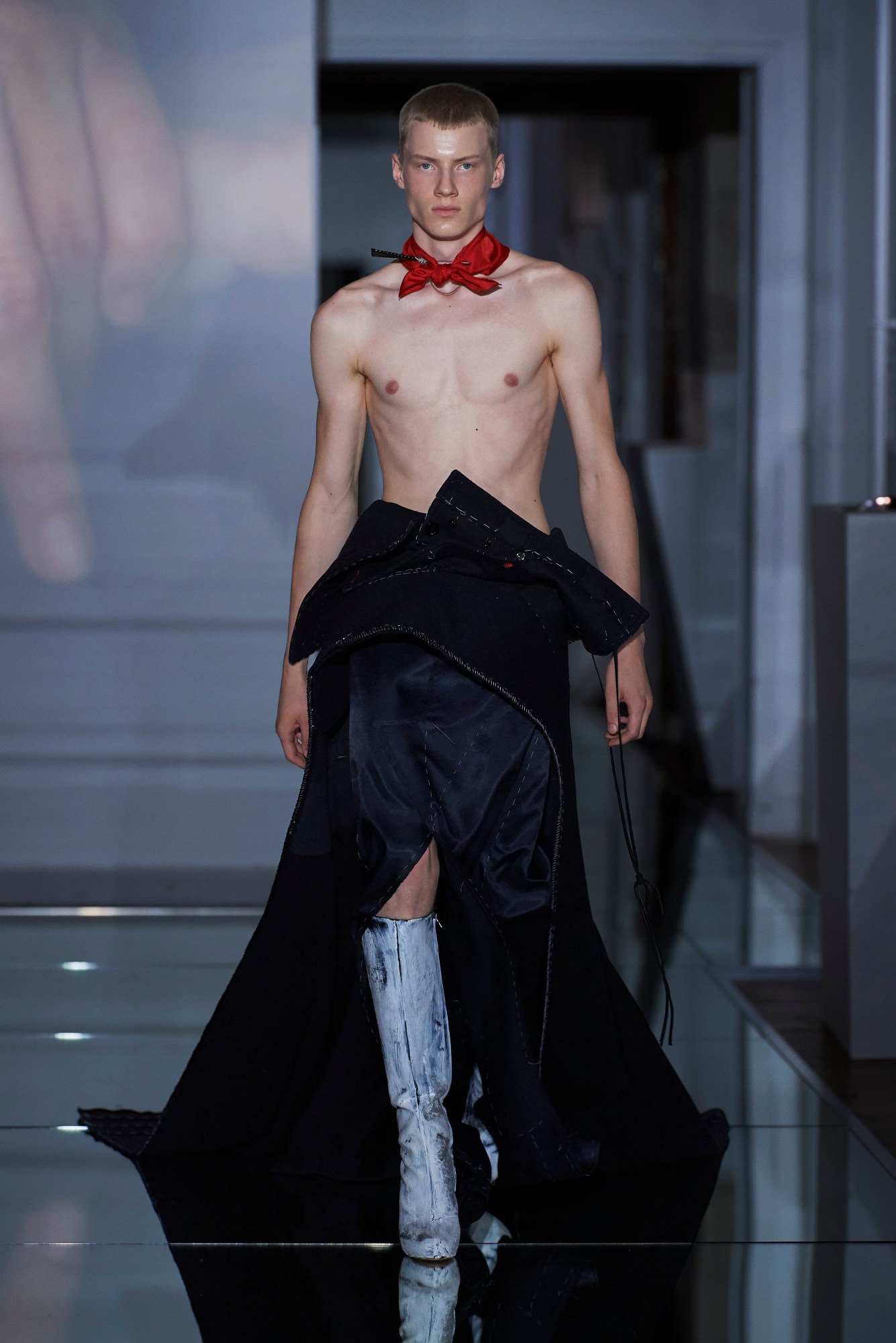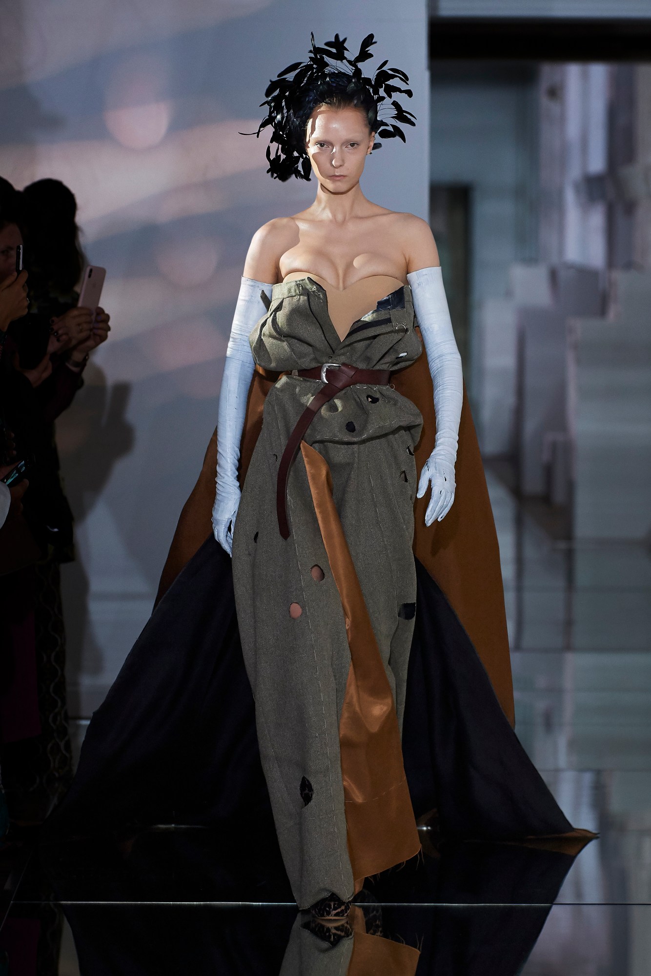 “It’s taken me a bit of time to find the way to do these dresses with the authenticity of Maison Margiela,” he adds in the podcast. “My intentions are compulsive and anarchic. Now we are in decay, it’s a reflection of the breakdown of social structure. We’re going through a survival mood. We need to go back to trusting in our instincts.” Another thing John spoke about was the equine therapy he underwent in Arizona, following his breakdown in 2011. He has finally gained the confidence to revisit that period and the time before it — and for him, it’s intertwined with the tradition of couture; the René Grau image of it that is still burnt in his mind. It’s funny how things come full circle, but today that sense of old-world couture which he was once so synonymous with has an entirely new context.