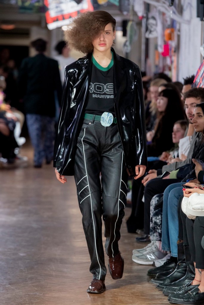 To those that followed the London menswear shows, an undisputed stand-out was Martine Rose. Set in the designer’s daughter’s school, her AW20 collection was a characteristically strong offering of quirky takes on classic, wearable clothes: windbreakers with extra sleeves extending from the back yoke, or jeans with backstage portraits of SS20’s models laser-etched into the denim.