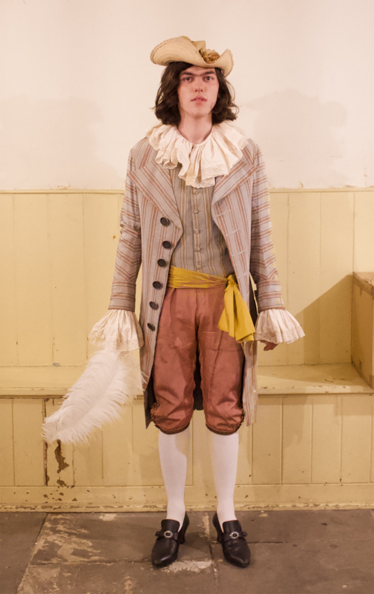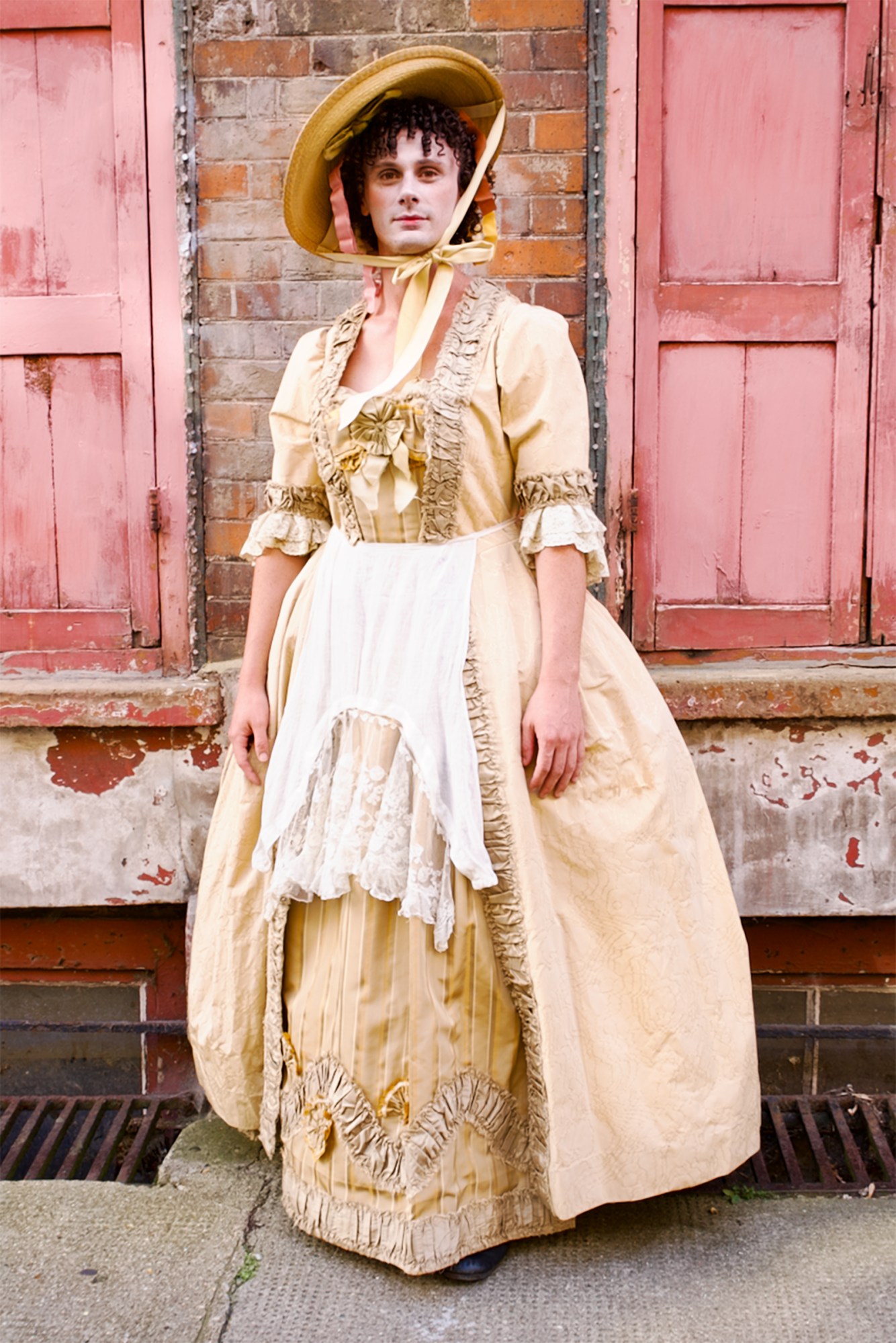 Research started with documents but quickly veered into speculation, invention, intuition. “We thought about what jobs people had,” Adcock said. “Who would a working-class queer in 1750 look up to? Maybe the flower seller. The basket lady. Maybe you dress as her at a fancy dress night in a molly house. Maybe your costume is your fantasy, your aspiration.”
