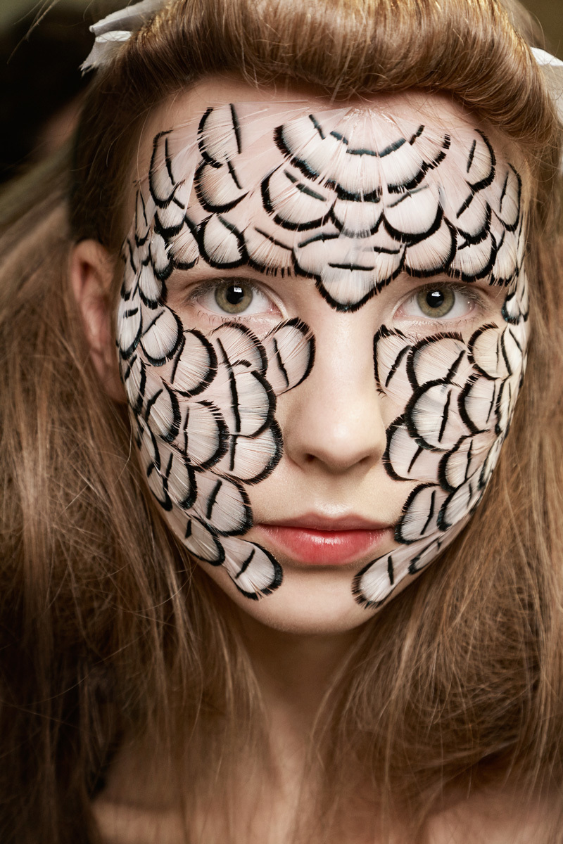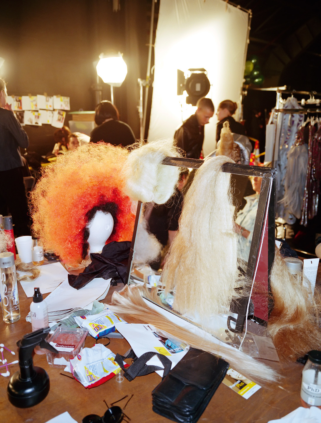 But beyond a display of McQueen’s talents, Robert’s images are just as much a window into a world of fashion journalism that’s all but disappeared. As the internet’s eclipsed print, the role of the catwalk and backstage photographer has changed. Fairer was one of the genre’s pioneers, one of the first to slip away from the catwalk ruckus and behind the curtain; and few designers provided such a vein of activity to mine backstage as Lee. As much as he was the master of the big visual spectacle, he was also a master of detail. Robert’s images document the preparation and staggering visual shocks that Lee created, but they also show the designer putting final touches to looks before they went out on the catwalk, losing himself in the intricacy of his creations.