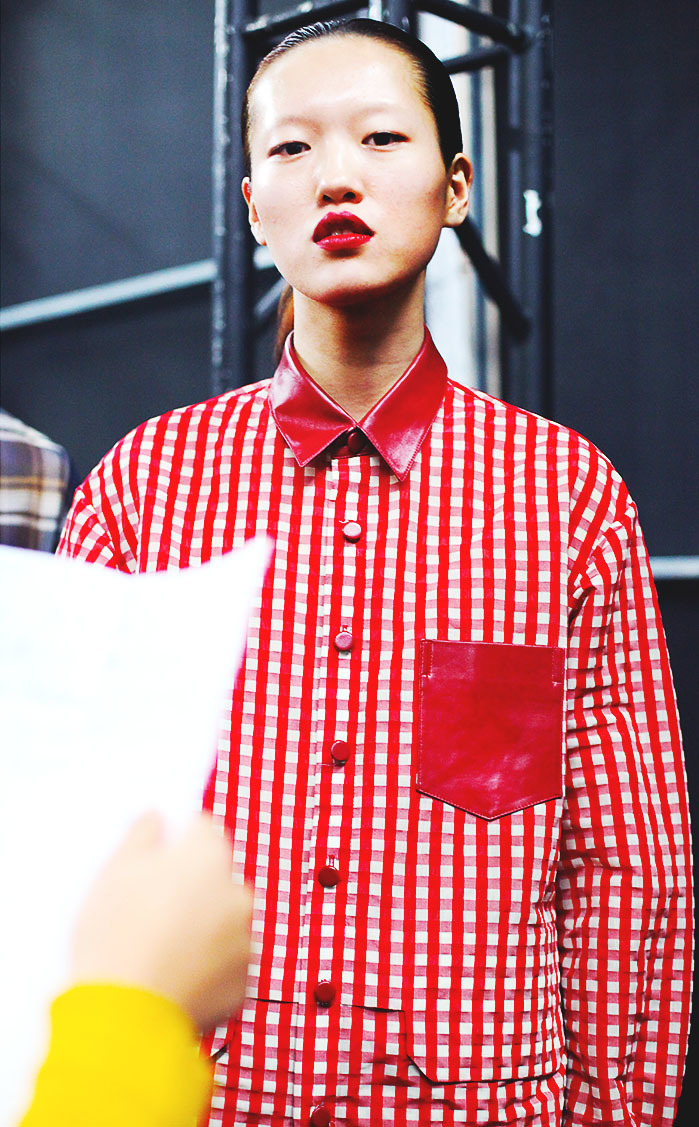 My inspiration came from personal experience combined with a love for Virginia Woolf. I’m unable to actually read her books but I’m completely in love with her as a woman. I watched a film about her and really connected to her as a character. I was going through a bit of a tough time in my own life and felt over-worked and under pressure. This was the first time I used a person as inspiration, but felt that Virginia Woolf’s character was actually the type of woman I design for, my muse is wise and independent and that’s what I see in Woolf. The way Woolf died was sad but it was as though she relieved herself of everything. I reflected this in the colours of the collection, with navy in the beginning, followed by reds and checks at the end. The music of the show also followed this theme, I started with soft flowing music and ended with heavy rock.