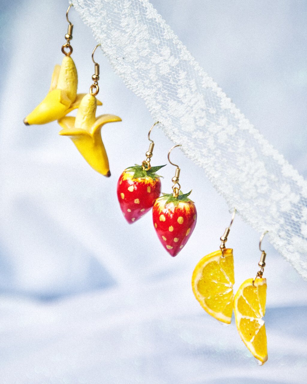 I am not the best when it comes to cooking for myself at home because I have to do it so much for other people in the daytime. So I guess it just really comes to what I’m craving or what I’m dreaming about eating at home, and maybe that’s a strawberry, banana tart. And I’ll just make that as something I can share with somebody else. But to create a single item it can take me up to 10 tries because I usually experiment with different sorts of clays. I test out durability, I test out the lightness of it. And then also, before releasing my product, I test out the wear of it. So it honestly takes more failure than anything. And then finally, I end up with a simple strawberry earring that legitimately took me seven tries to make.