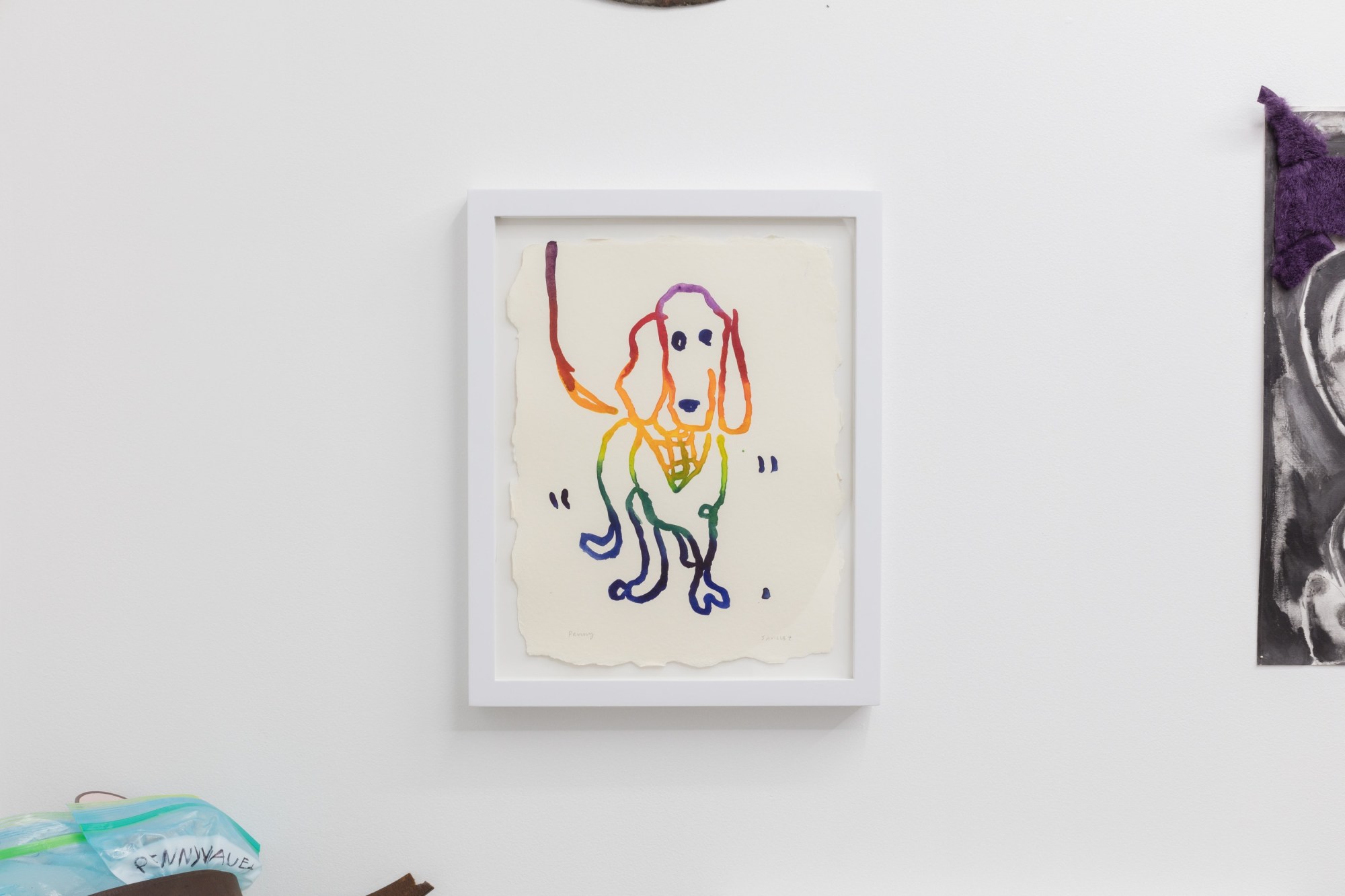 Motivated by her interest in the shifts Penny made in her life, Kalena invited 36 of her artist friends to reflect on them. The results are on view at Jeffrey Stark, in a stellar group show called Caring for Animals… Benefiting People. “Everybody who’s in the show knows me or knows Penny. They might be my best friend, or someone I only know from the internet — all different versions of fans of my dog.”