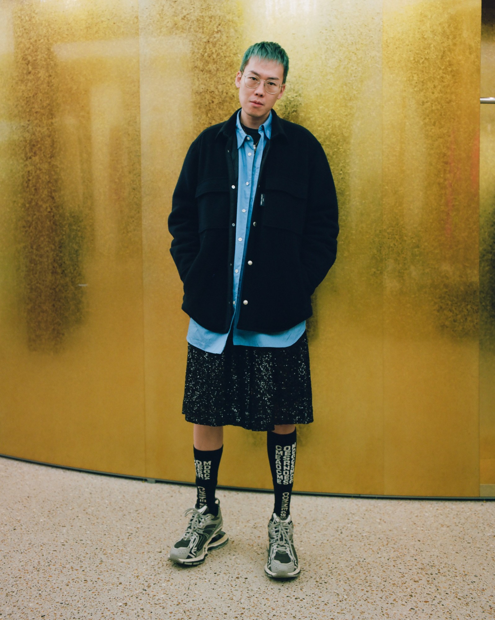 What are you wearing in your straight-up? I’m wearing a Comme des Garçons boiled wool jacket, a Casey Casey shirt, some old thrifted suit trousers and some men’s Prada shoes. How would you describe your personal style? Most of the time I dress with a degree of androgyny – the majority of my wardrobe is menswear – but sometimes I like to play dress up with bows and pretty skirts and layers. What I put on each morning is a reflection of the person I want to be for the day. Favourite designers at DSM? Aside from the Comme des Garçons collections at the epicentre, I love the gentler fashion brands we have, like John Skelton, Christopher Nemeth, and Casey Casey, as well as mould-breakers like Kiko Kostadinov, Maximilian, and Doublet. What do you order at the Rose Bakery? My order is usually a smoky lapsang or matcha tea, and of the sweet treats they bake, I am especially fond of the honey spelt cake, the pumpkin cake in the autumn, and the chocolate cookies. What’s the one piece currently in store that’s on your wishlist? Top of my wishlist is a pair of Kiko Kostadinov Harkman shoes (a shoe for life), or a little red leather handbag in the shape of a flower from CDG Girl. Which cartoon or film character’s style do you most identify with? There are too many to count! Jocelyn from A Knight’s Tale, N from Pokémon, all the characters from Nana, Numbuh 3 from KND, any hobbit from the Lord of the Rings franchise, Korben from Fifth Element, Paul Atreides from Dune (1984). I also think it’s important to acknowledge the sartorial influence Spongebob had on the famous Miu Miu chino skirt set.