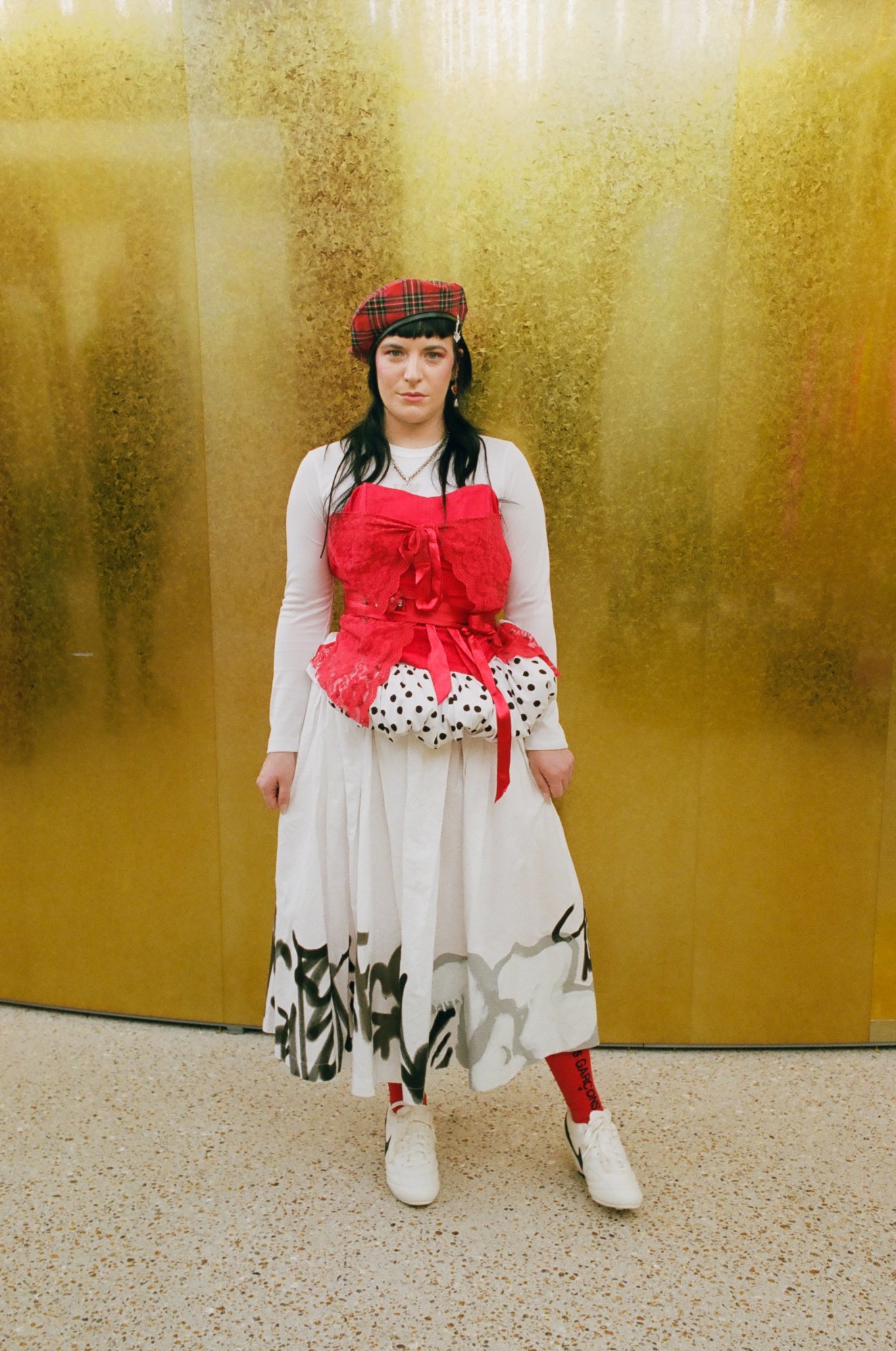 What are you wearing in your straight-up? For my portrait I’m wearing my favourite colours; RED: vintage hat and corset + CdG Homme Plus socks; WHITE & A BIT OF BLACK: dotty long sleeve top, graffiti skirt and shoes all Comme des Garçons. How would you describe your personal style? I would describe my personal style as ‘Alice in Wonderland meets Marie Antoinette meets Kylie Jenner’ (that’s also my instagram bio). Favourite designers at DSM? CdG, Junya Watanabe, Tao, Chopova Lowena, Solange Azagury and Miu Miu. What do you order at the Rose Bakery? Any fresh pasta made by the incredible chef, Maf, is something I always go for. Also, try any cake or dessert she makes with rhubarb. Simply iconic. What’s the one piece currently in store that’s on your wishlist? For SS22, I would like to have the most wanted piece of fabric of the season: the Miu Miu mini skirt. Literally just to frame it and have it there hanging on my wall of fashion fame. Which cartoon or film character’s style do you most identify with? I think Ranma from “Ranma 1/2” is the anime character who I identify the most with. A martial artist stuck in a curse that changes him into a girl if he touches cold water.