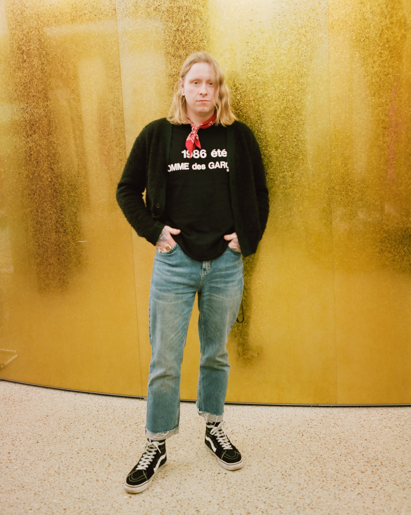 What are you wearing in your straight-up? Homme Plus tuxedo trousers, Homme Plus cropped jacket, CDG x Nike foamposites, mini Jacquemus bag, Babes t-shirt and Alan Crocetti face jewellery. How would you describe your personal style? Tailoring meets sportswear, 80s inspired and a little camp. Somewhere between Adam Ant, Brian Harvey from East17 and a London pigeon. Favourite designers at DSM? CDG Homme Plus, Kiko Kostadinov, Jacquemus and Doublet. What do you order at the Rose Bakery? Hot chocolate. What’s the one piece currently in store that’s on your wishlist? A Kiko Kostadinov jacket. Which cartoon or film character’s style do you most identify with? Almost any character from Eduardo Casanova’s film Pieles or the fed-up bell boy in the elevator scene from the Grand Budapest Hotel by Wes Anderson.
