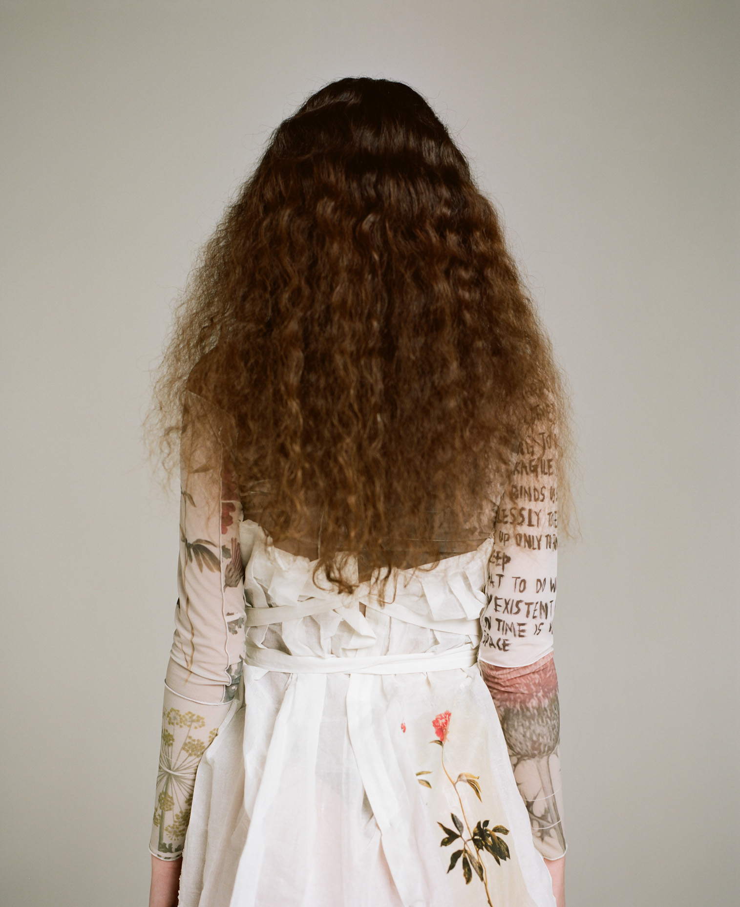 I have such an issue describing it, but my work plays on tension and contrast. I’ve always referenced utility and workwear but try to contrast that with something soft and delicate. I’d say I aim to create something emotive, rather than getting at a “particular” design aesthetic. I do have overriding conceptual references and key themes, like the idea of time I use in my garments as a means of making it tangible. I always have these overarching themes that are kind of deconstructed through material manipulation.